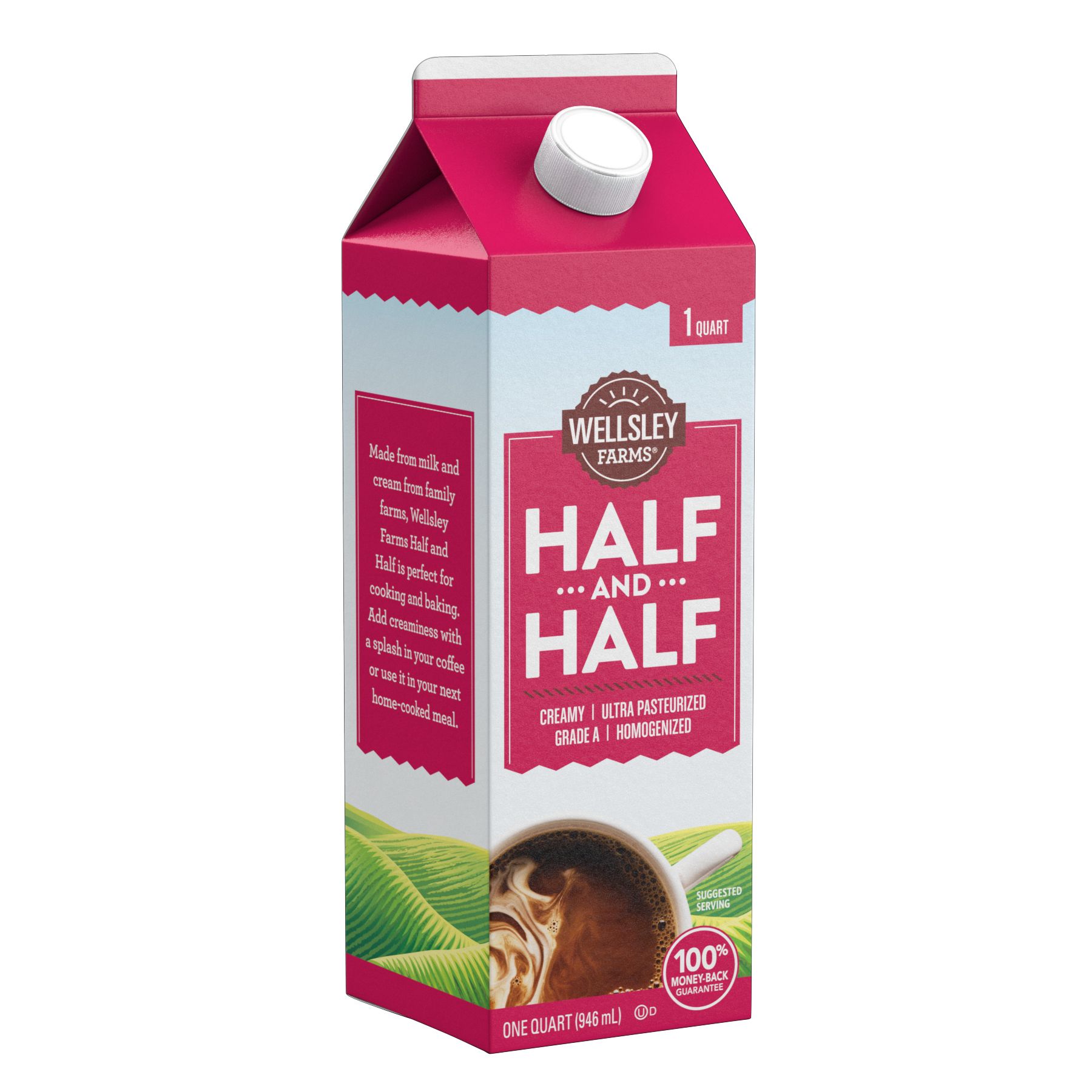 Wellsley Farms Half and Half is carefully made with milk and cream from family farms that care about the quality of their milk. You will love the smooth texture and creamy flavor added to your morning coffee. The Wellsley Farms Half and half is also your best ally for cooking and baking. Its creaminess and soft texture will elevate your dishes, cakes and other recipes. Made without carrageenan, this Half and Half contains high quality ingredients suited to the standards you expect from Wellsley Farms. All milk is sourced from local farms, and this half and half will certainly become a staple in your household.