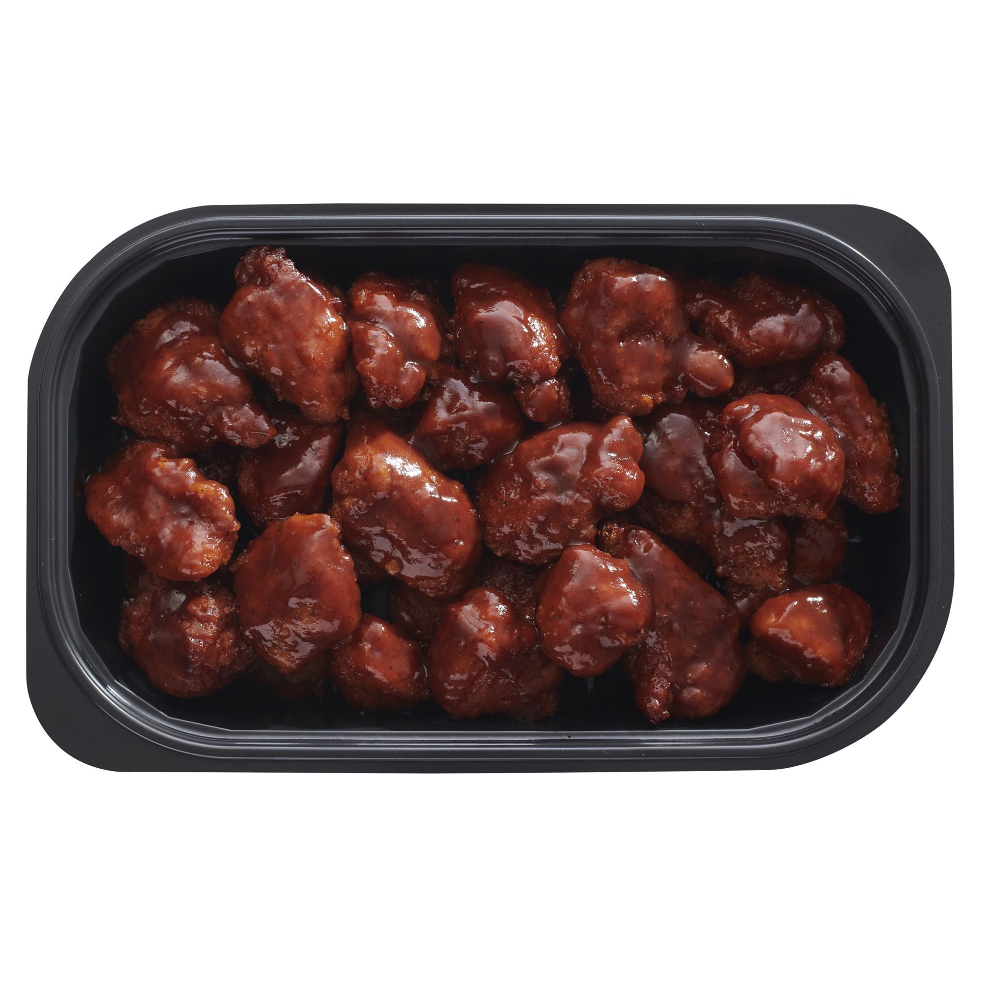 Honey BBQ Glazed Chicken Bites feature a rich BBQ glaze with a hint of honey, this tray of boneless wings is a convenient, grab and go option located in the deli. This 2.4 pound tray can easily serve 8-10 people and will make a great serving dish. Honey BBQ boneless wings are fully cooked and easy to prep with quality you can trust. Boneless chicken wings are an essential appetizer or entree for parties, game days, cookouts, and pizza night. Honey BBQ bites can be heated in a conventional oven, microwave, and are a great option to prep in the air fryer. Crispy, flavorful, restaurant quality BBQ Boneless Bites are sure to be a hit with your friends and family.