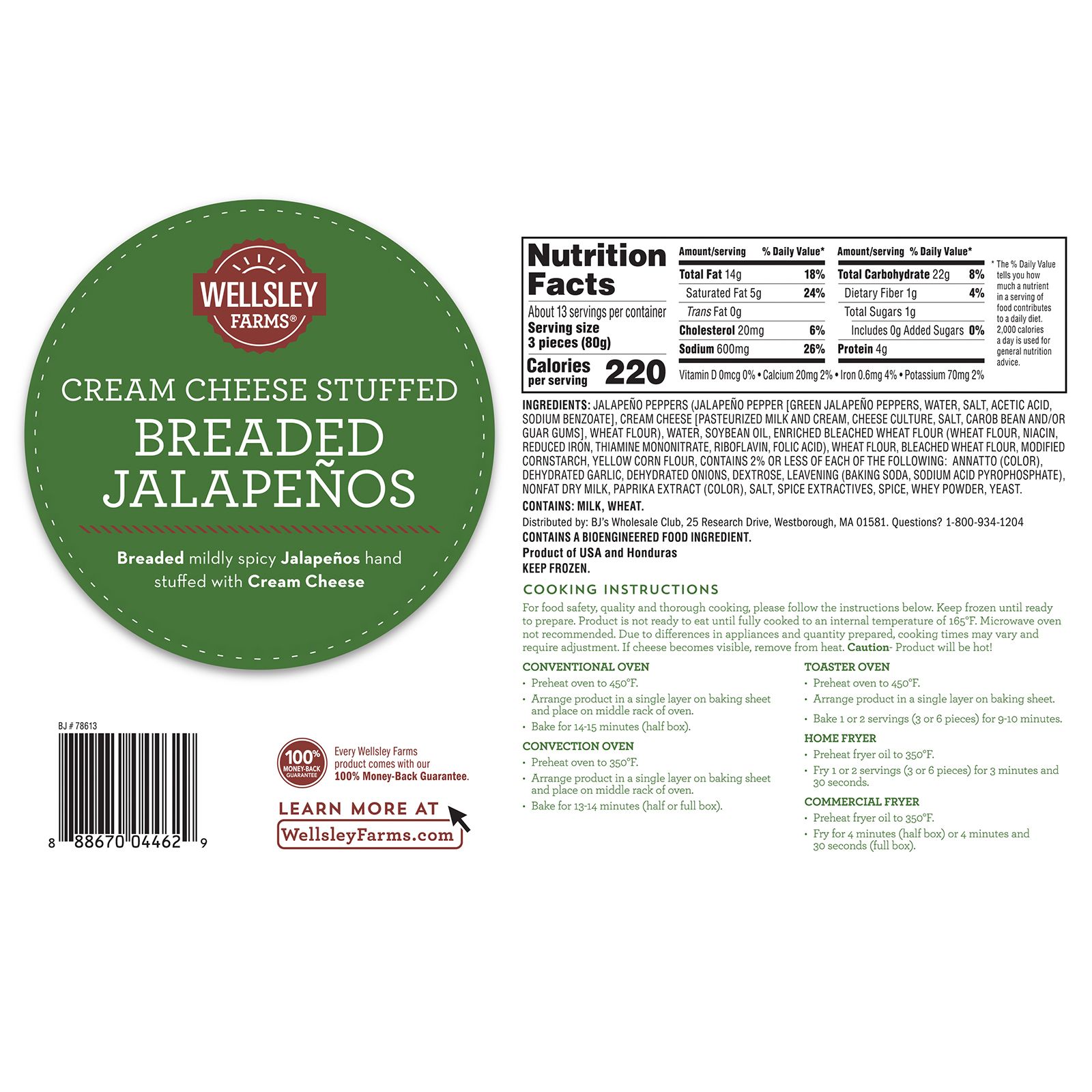 Wellsley Farms Jalapeno Poppers feature breaded and battered jalapenos hand stuffed with cream cheese, and make great appetizers for any occasion.