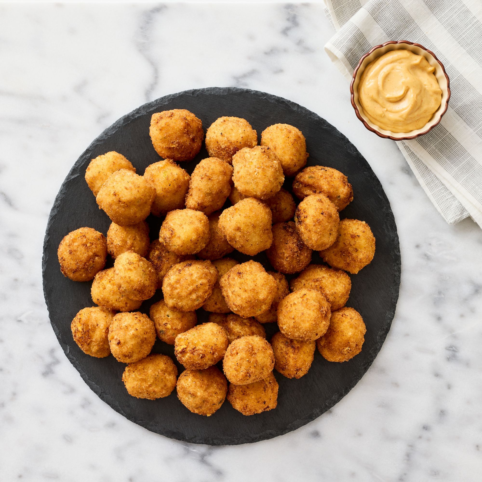 Cavatappi pasta and a creamy, three-cheese filling coated in panko bread crumbs. Crispy on the outside, creamy on the inside, this classic comfort food gets reimagined as a bite-sized appetizer. Warning: guests gobble these up as soon as you put them out, so you might want a second box… or three. Serve by themselves or with your favorite dipping sauce. Loved by adults and kids! Easy to cook in the air fryer or oven.