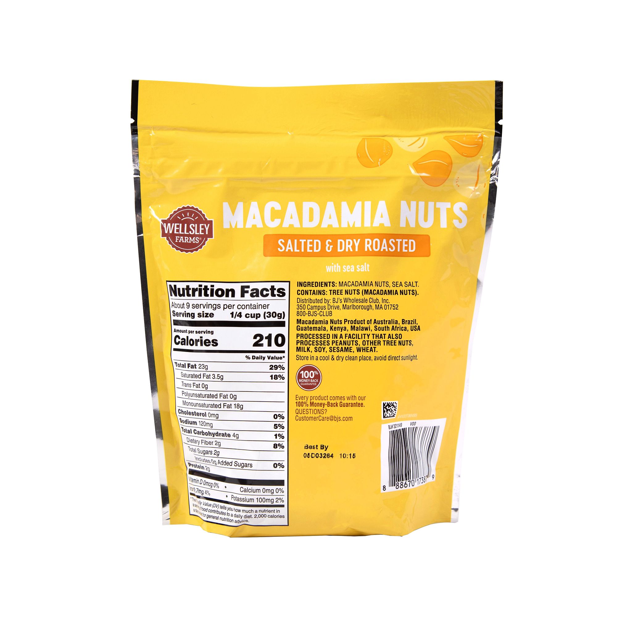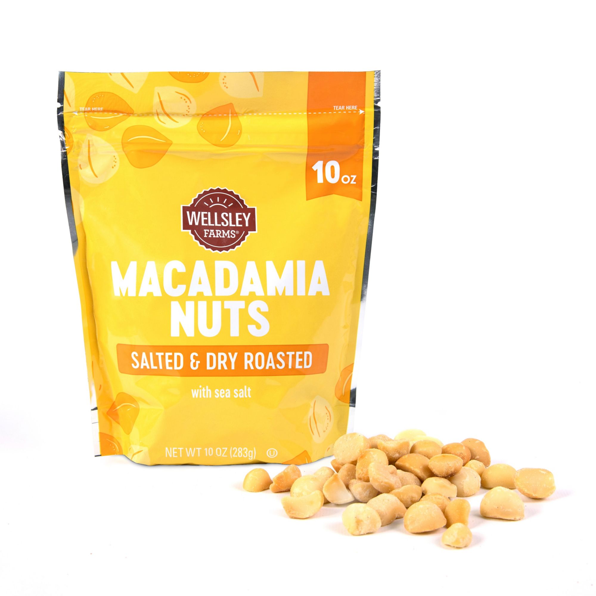 Wellsley Farms Macadamia Nuts are perfectly roasted to bring out rich flavor and sprinkled with the perfect amount of sea salt for a balanced, savory flavor. Macadamia Nuts can be added to cookies, bread or be enjoyed as an everyday snack.