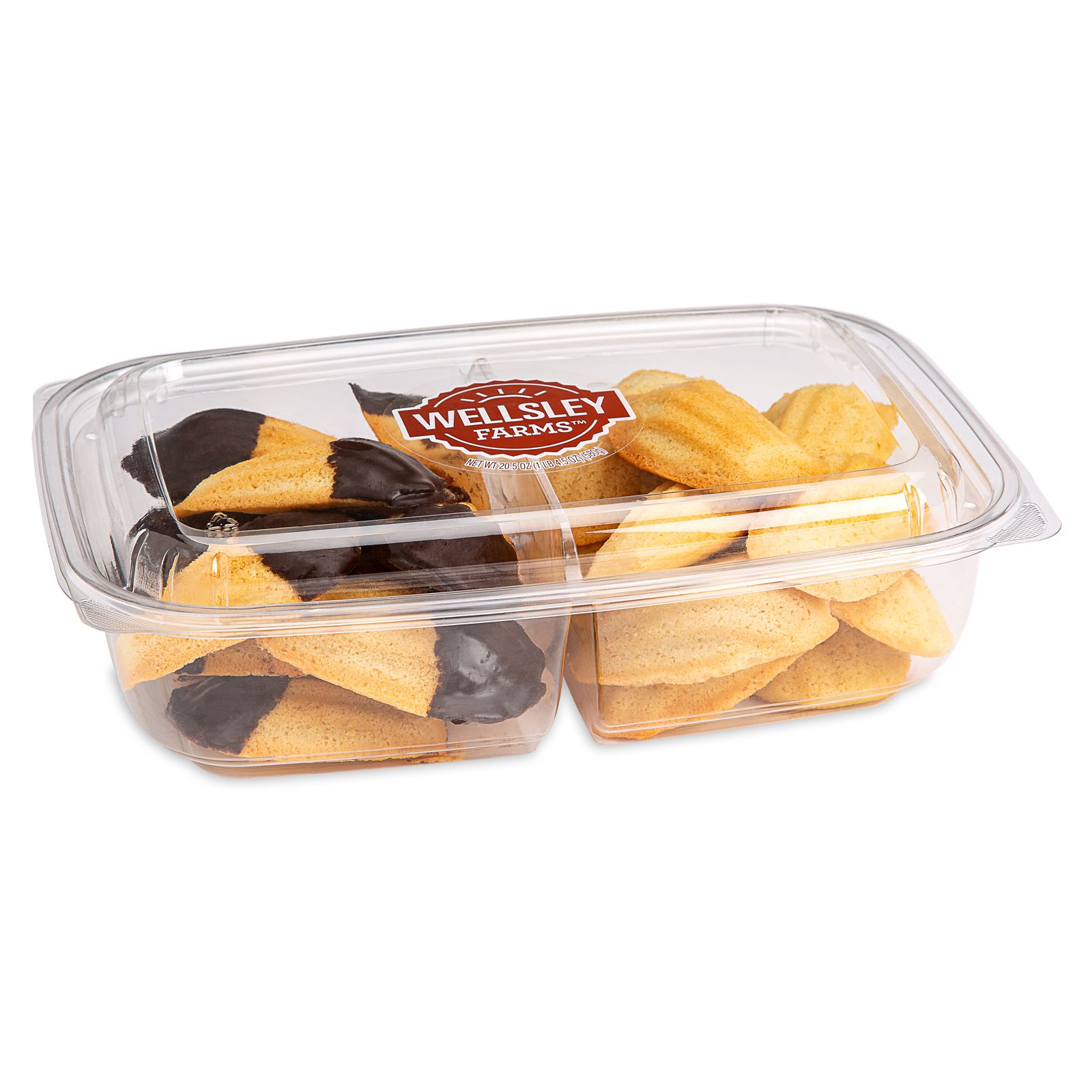 Wellsley Farms madeleine cookies are a delicious French classic. These buttery sea shell shaped tea cakes are half plain and half dipped in rich chocolate. These cookies are the perfect choice for an afternoon snack or dessert. This package includes 28 cookies.
