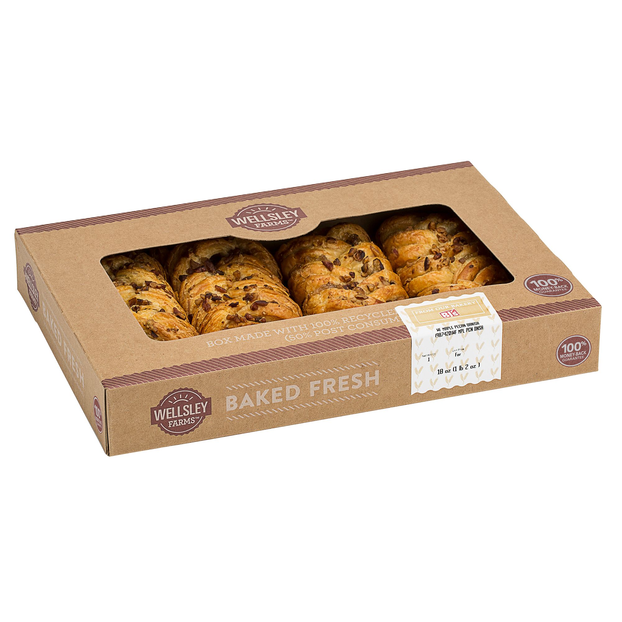 Wellsley Farms Maple Pecan Danish box is a delicious breakfast snack or even a evening treat. Made with a flaky crust, a maple finish and pecans nuts sprinkled over the Danish. Warm it up in the oven for a delectable warm treat.