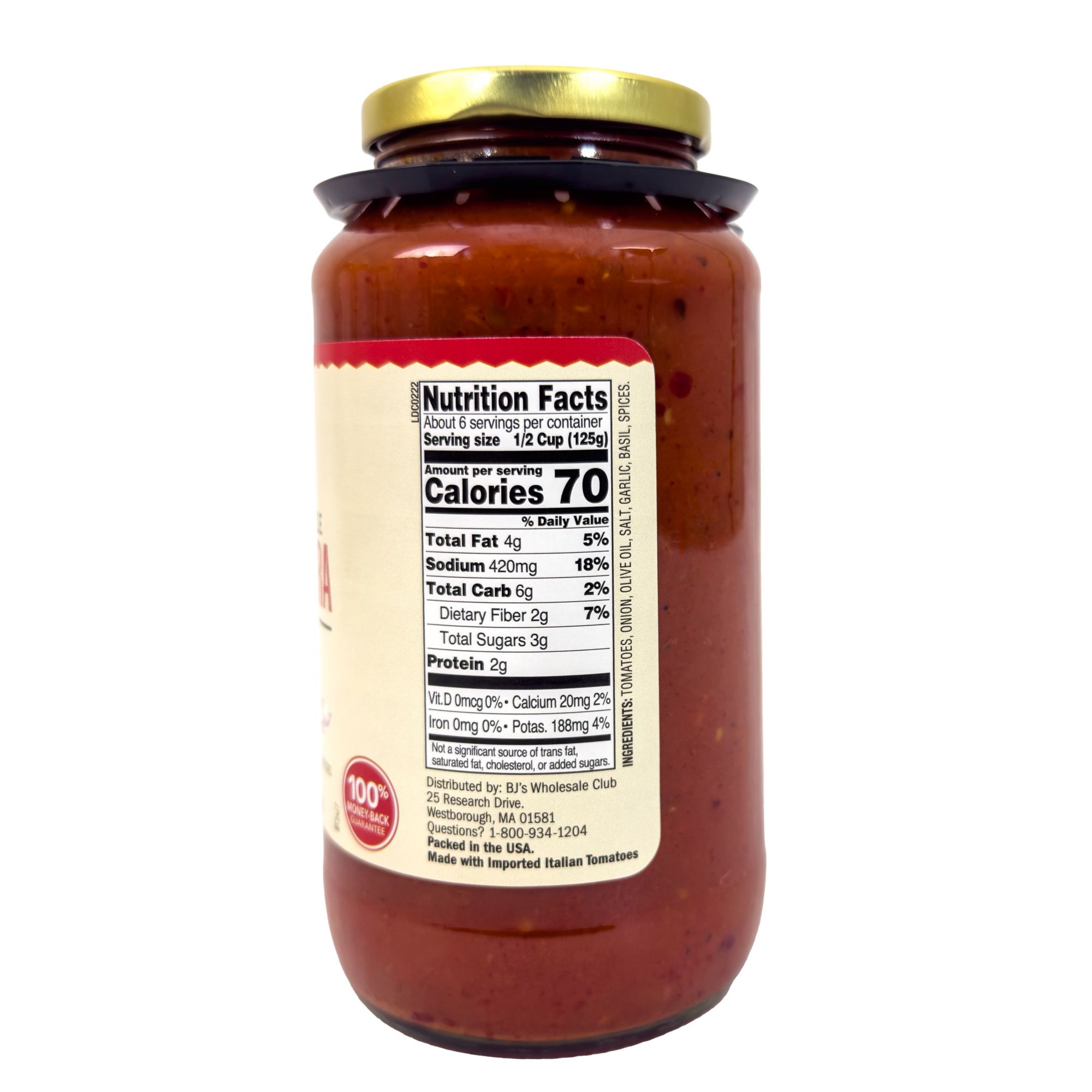 Ingredients: Tomatoes, Onion, Olive Oil, Salt, Garlic, Basil And Spices.