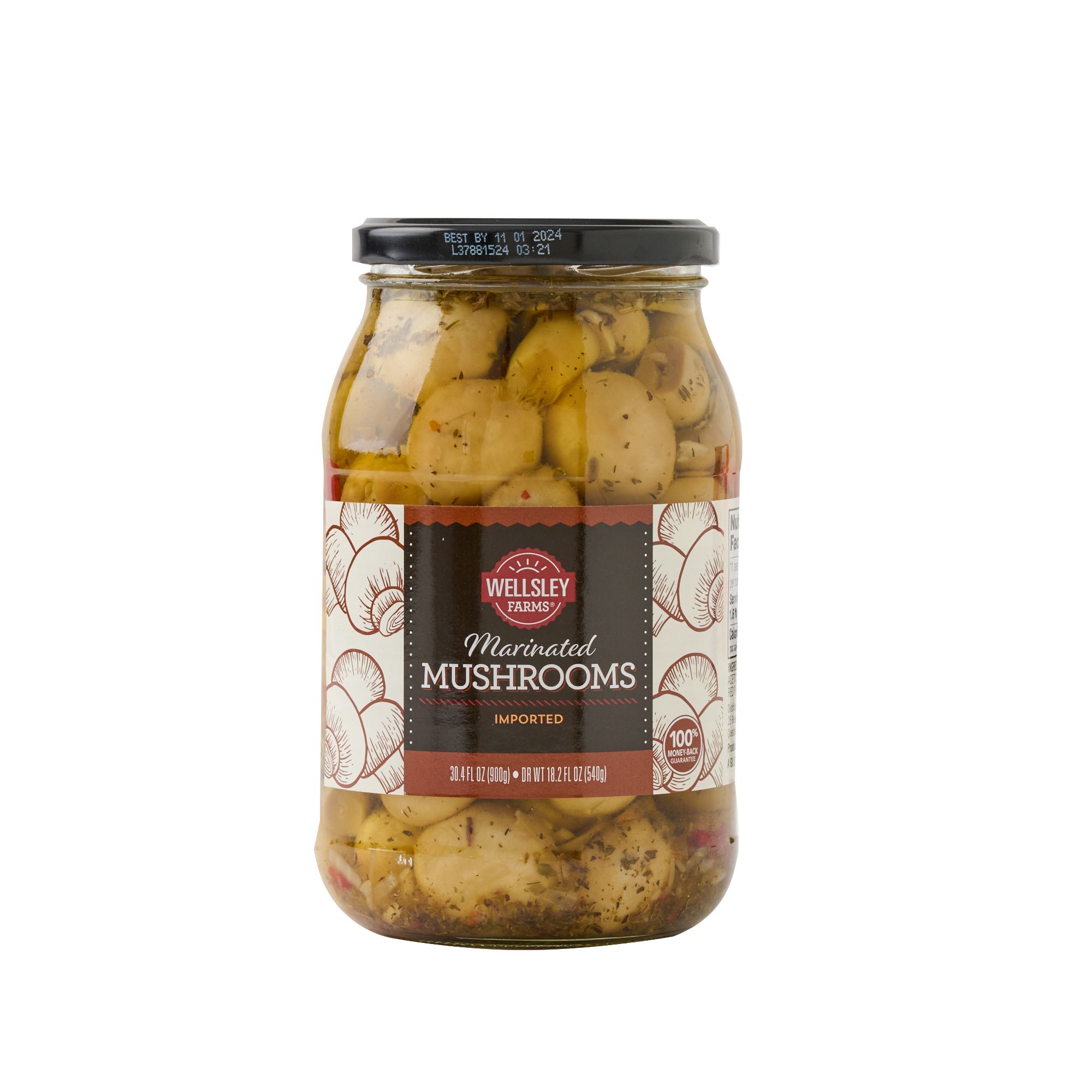 A welcome addition to salads, pasta or simply as a side dish for meals or parties, these Wellsley Farms 30.4 Oz. Marinated Mushrooms offer a delightful flavor. The mushrooms are marinated and perfectly seasoned to please your palate.
