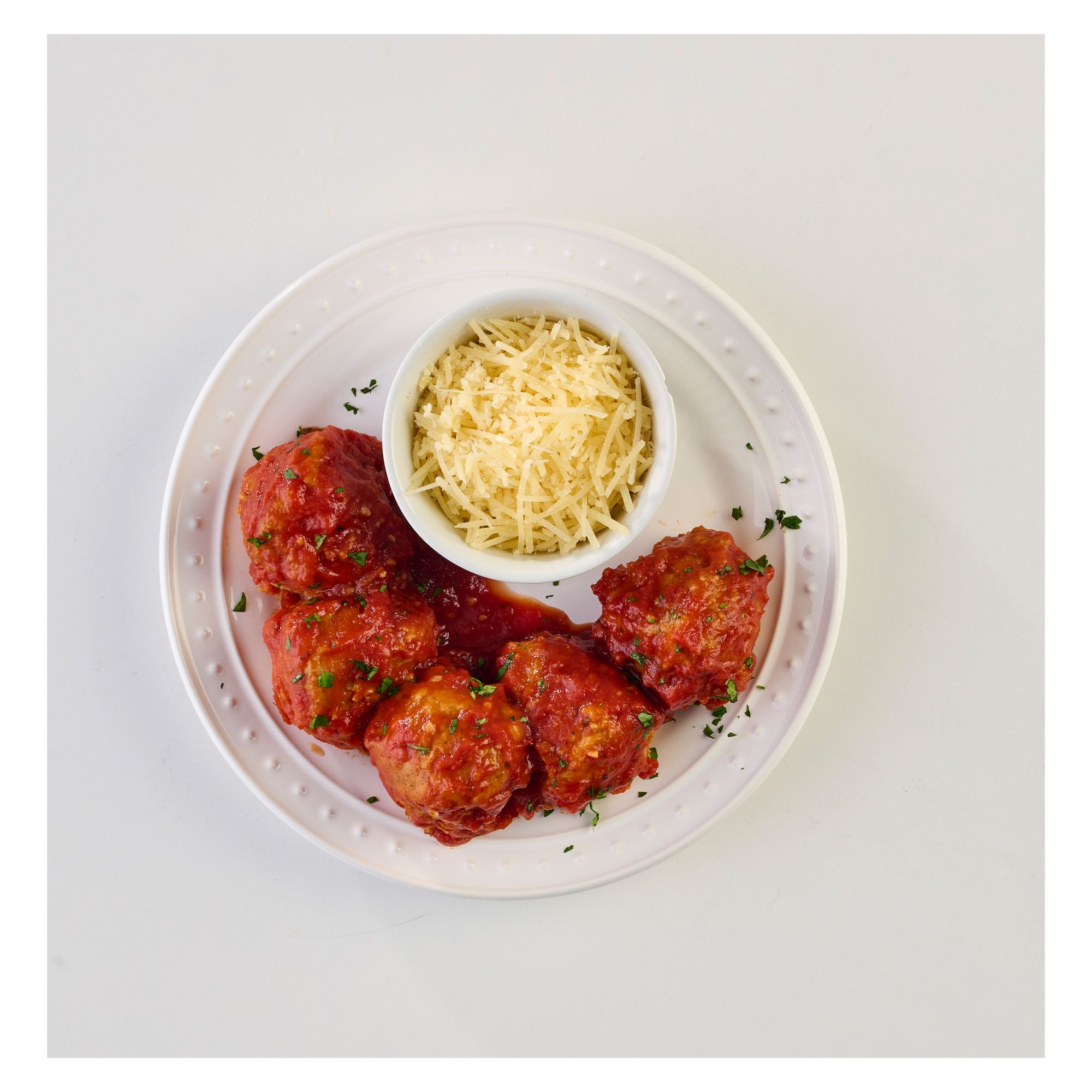 Ingredients: Meatballs (Pork, Beef, Breadcrumbs [Enriched Flour {Wheat Flour, Malted Barley Flour, Niacin, Reduced Iron, Thiamine Mononitrate, Riboflavin, Folic Acid}], Sugar, Salt, Yeast, Ascorbic Acid [Vitamin C]), Eggs, Milk [Vitamin D Added], Grated Parmesan Cheese [Parmesan Cheese {Part-Skim Cow's Milk, Cheese Cultures, Salt, Enzymes}, Parmesan Style Cheese {Corn Starch, Water, Palm Oil, Cellulose, Salt, Natural Flavor, Caseinate, Sorbic Acid (Preservative), Annatto (For Color)}, Natamycin {A Natural Mold Inhibitor}], Onions, Olive-Pomace Oil, Salt, Garlic, Spices). Pomodoro Sauce (Diced Tomatoes [Chopped Peeled Tomatoes, Tomato Juice], Tomato Paste, Modified Corn Starch, Onions, Water, Olive-Pomace Oil, Salt).