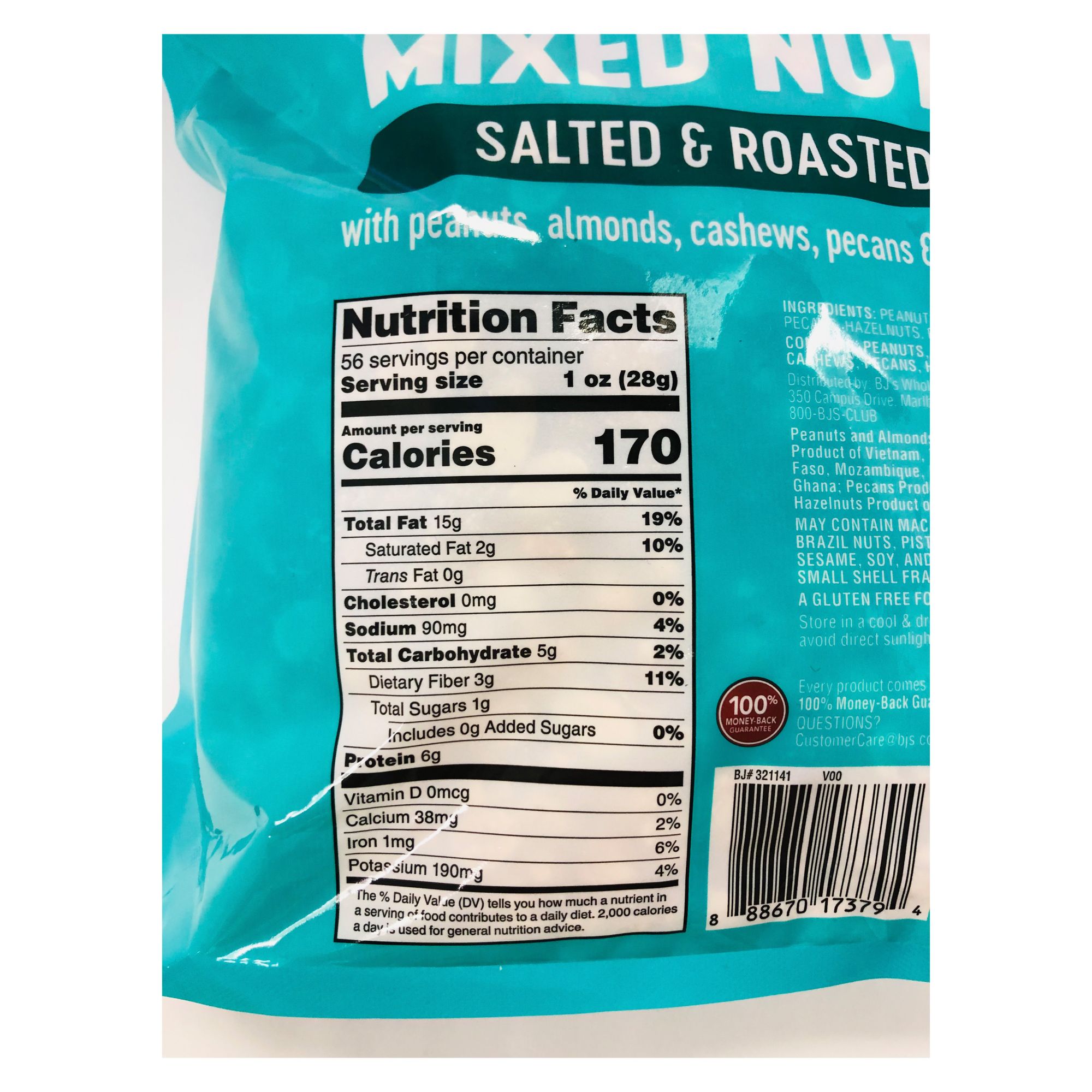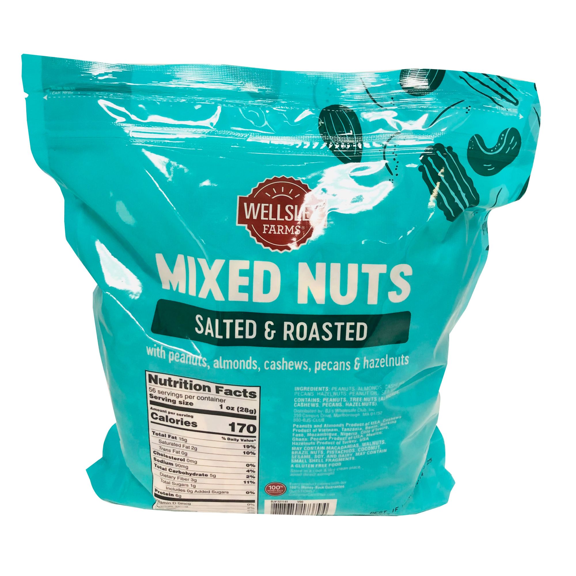Includes salted mixed nuts, 56 oz.