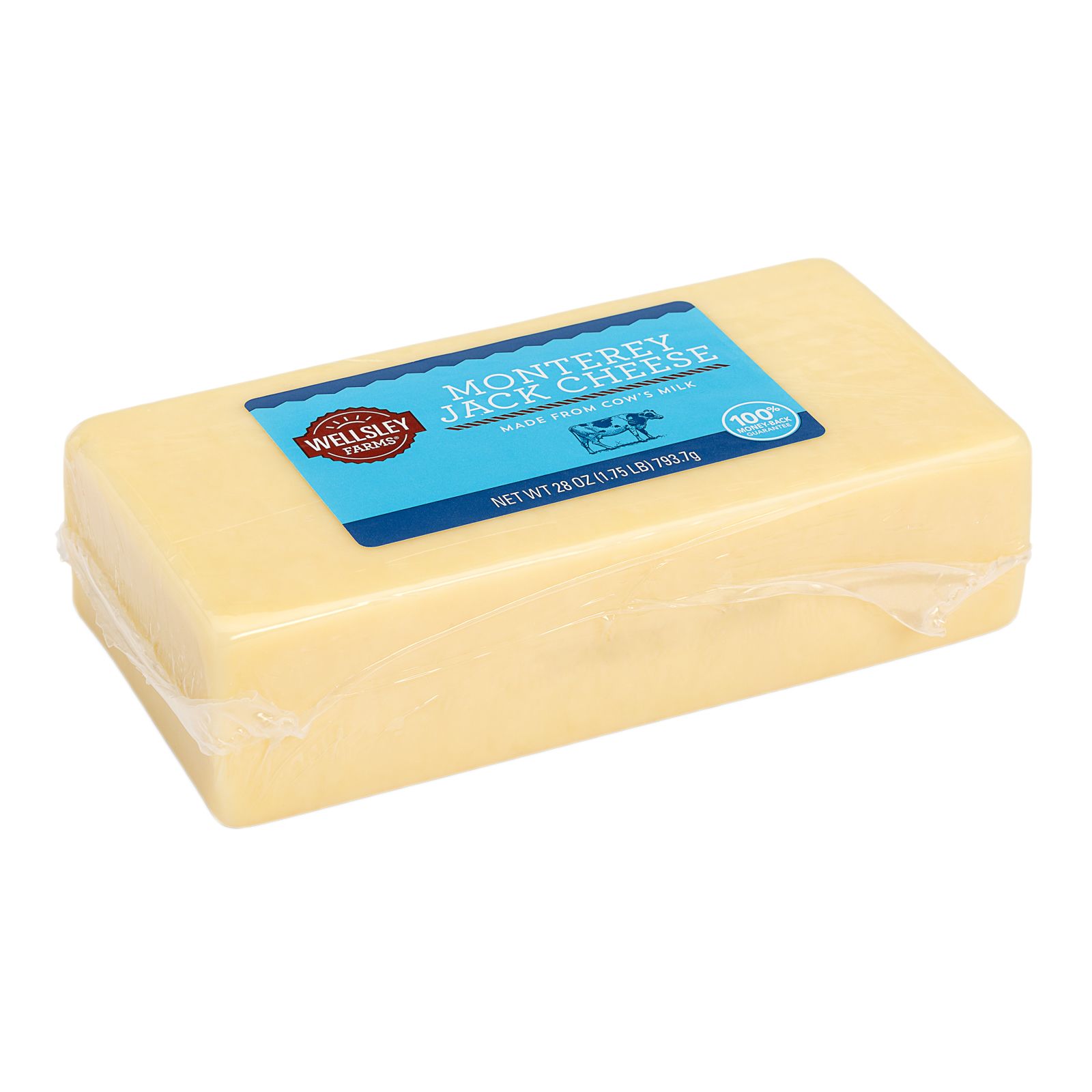 Simultaneously vibrant and mild, Wellsley Farms Monterey Jack Cheese is a smooth-textured cheese with an easy-to-melt quality that makes it terrific for cooking. Slice this cheese and melt it in your favorite Mexican dishes, grate it on burgers or sprinkle in salads for added zest. This versatile cheese will crown your casseroles and rev up your rolletinis. Stuff in chili or jalapeno peppers or swirl into a dip for a luscious crowd pleasing snack.