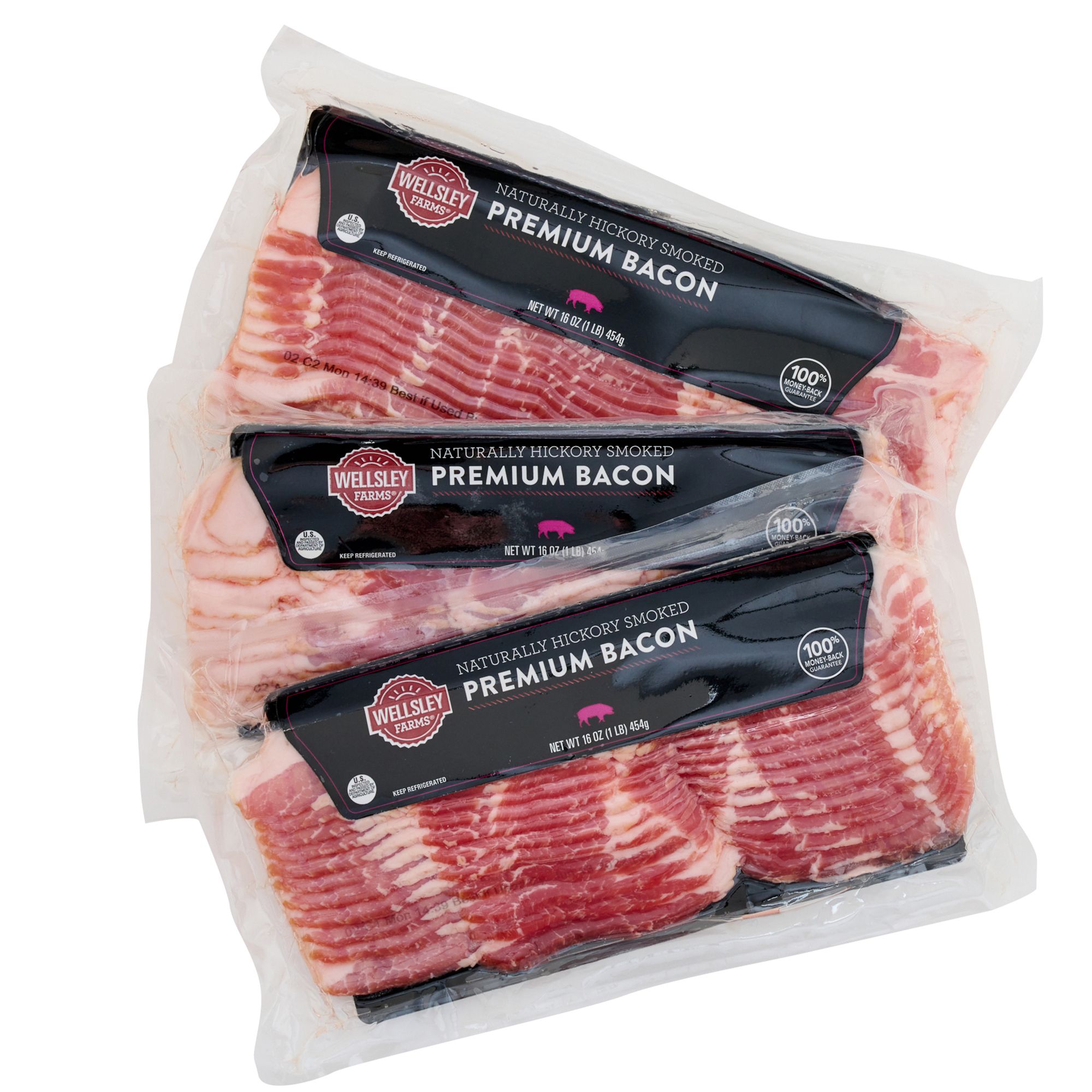 Wellsley Farms Naturally Hickory Smoked Premium Bacon, 3 pk./1 lb.