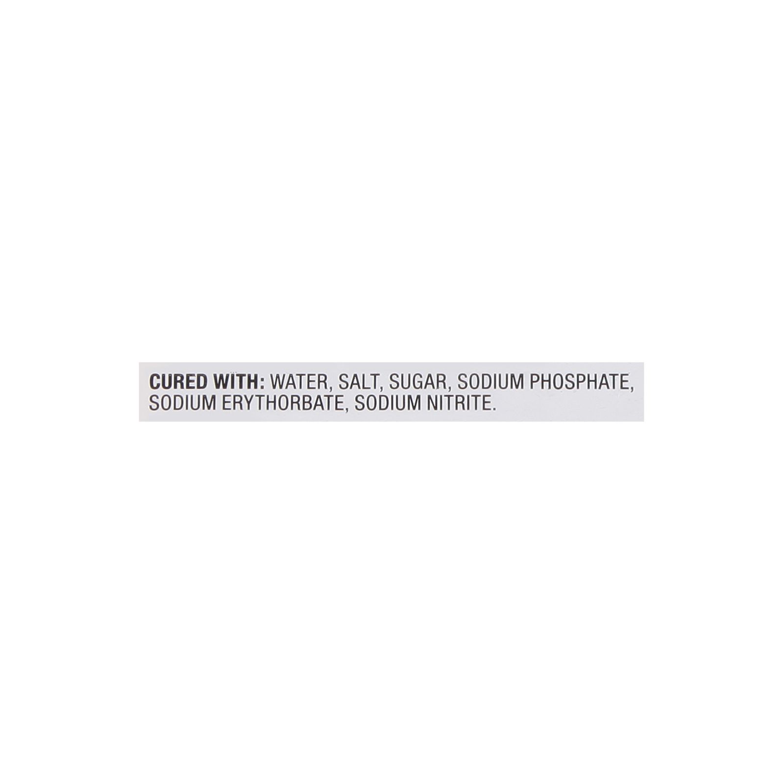 Ingredients:Cured With: Water, Salt, Sugar, Sodium Phosphate, Sodium Ertyhorbate, Sodium Nitrite.