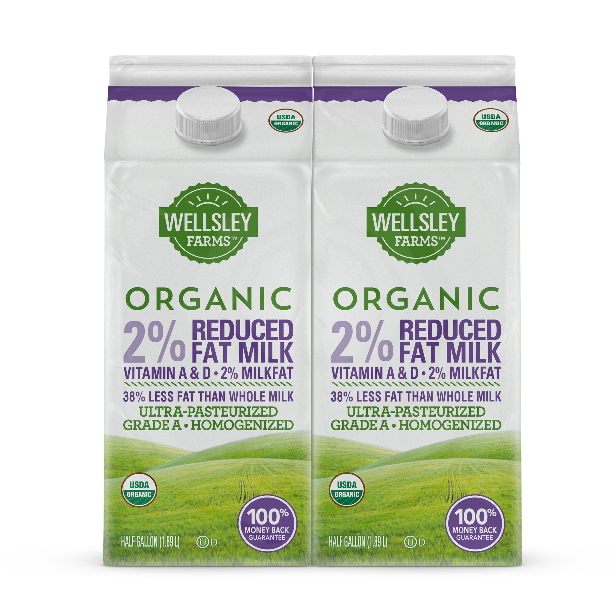 Includes two 0.5 gallons of organic 2% reduced-fat milk