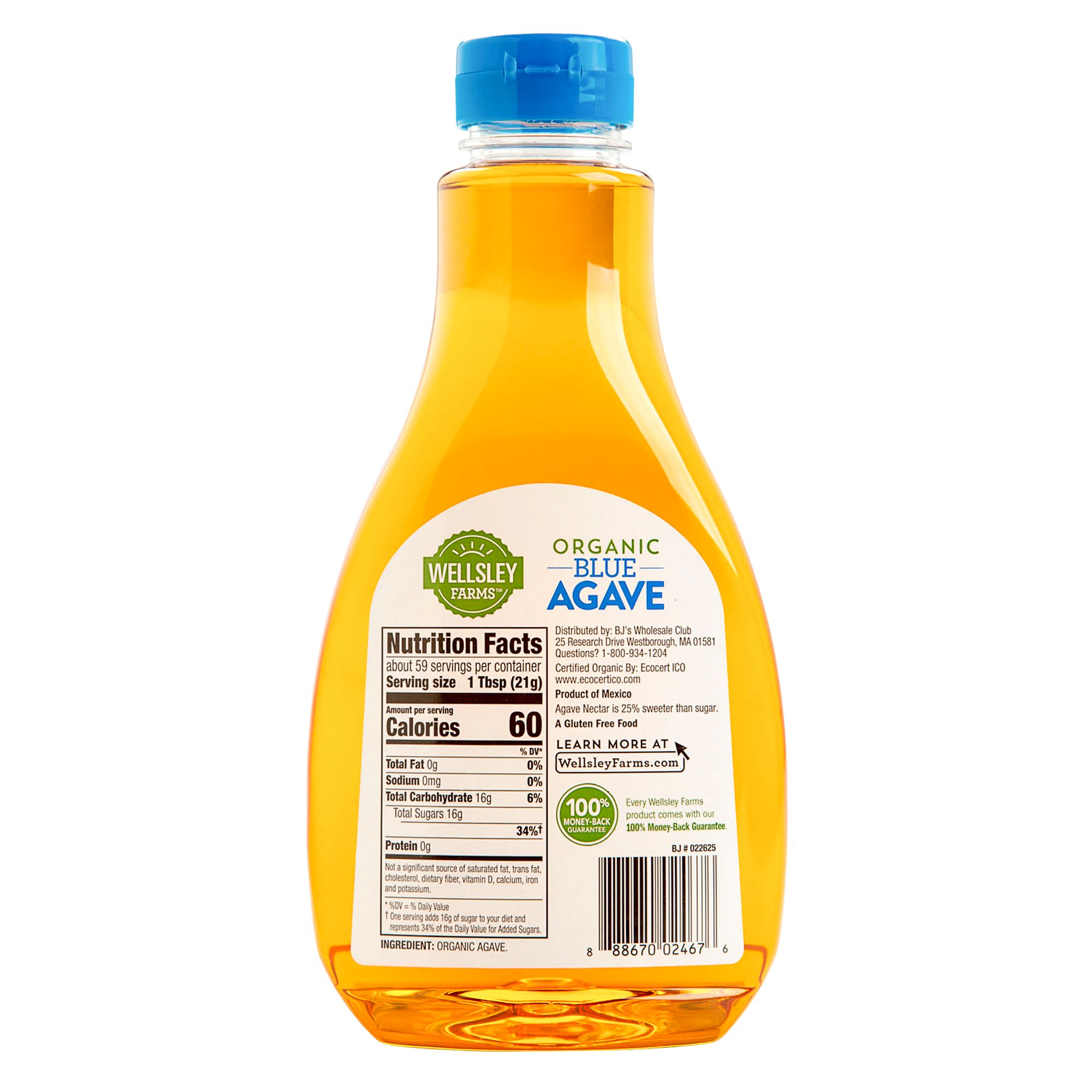 Wellsley Farms Organic Blue Agave is a delicious, sustainably-harvested sweetener that can be used in hot and cold beverages, as a topping or in baking. It is naturally sweeter than sugar, so a little bit goes a long way.