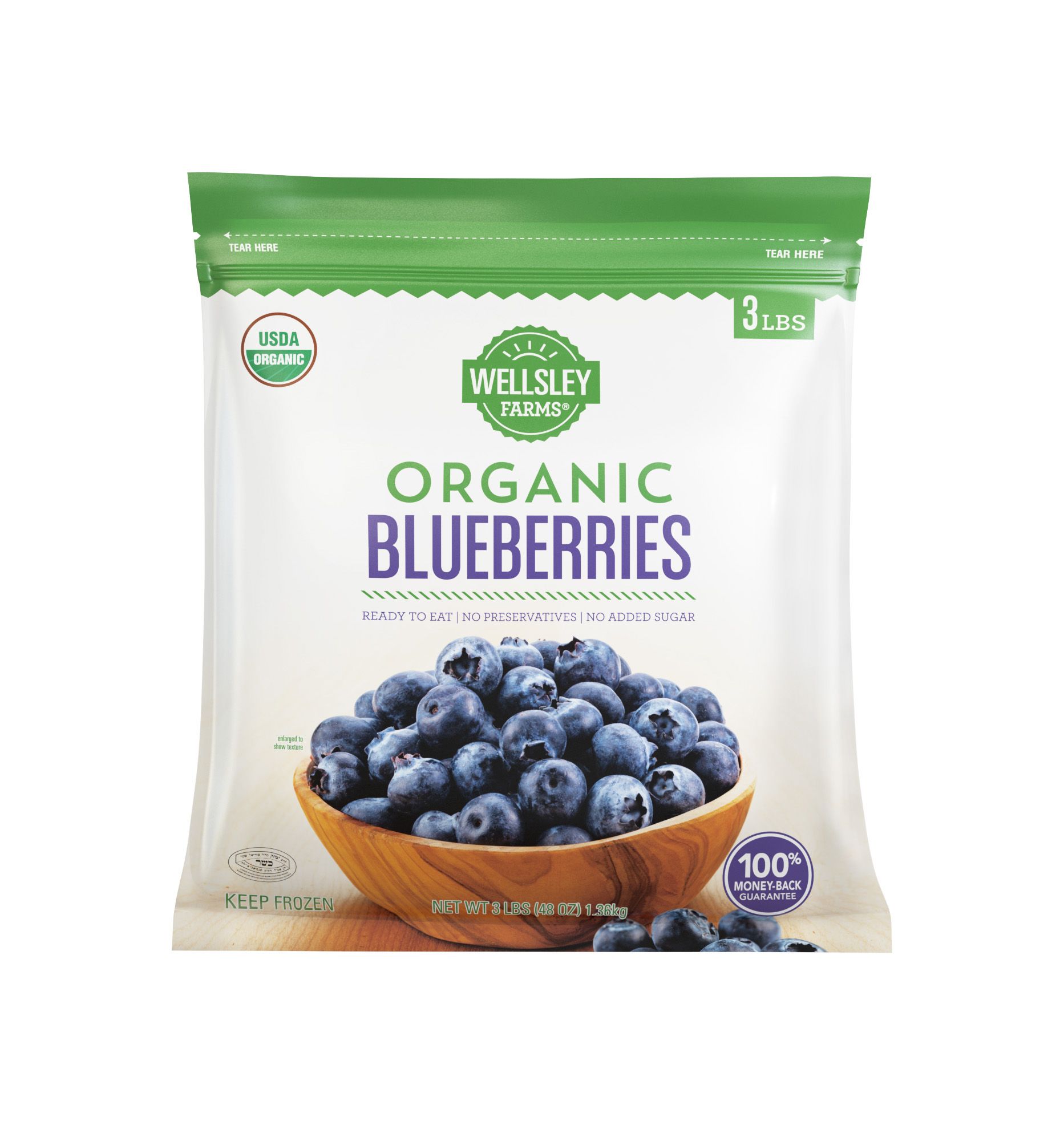 Wellsley Farms Organic Blueberries are perfect for smoothies, desserts or snacking. Blueberries are an excellent source of antioxidents and nutrients. Each package contains 3 lbs. of organic blueberries.