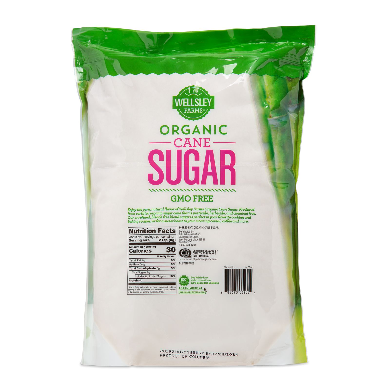 Enjoy the pure, natural flavor of Wellsley Farms Organic Cane Sugar. It is produced from certified organic sugar cane. This unrefined, bleach-free sugar is perfect in your favorite cooking and baking recipes or for a sweet boost to your morning cereal, coffee and more.
