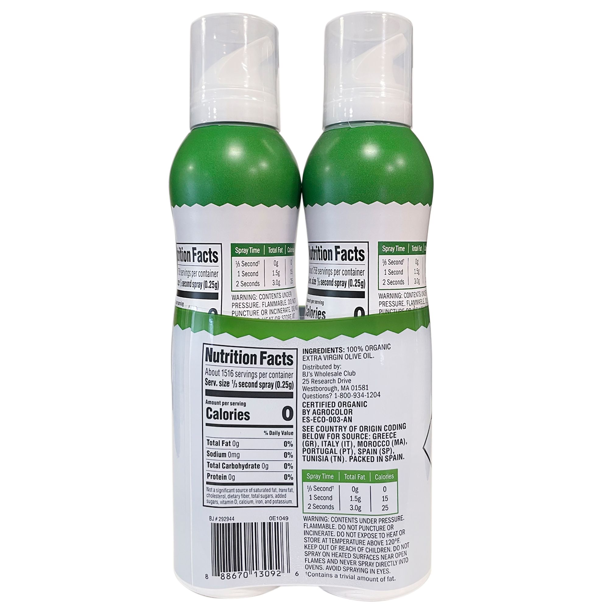 Includes organic extra virgin olive oil spray, 2 pk./7 oz. each