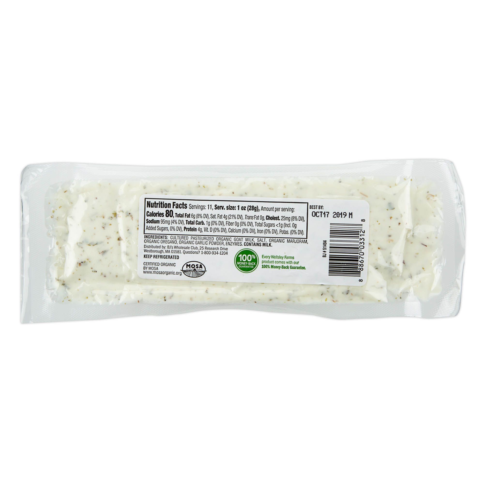 Ingredients: Cultured Pasteurized Organic Goat Milk, Salt, Organic Marjoram, Organic Oregano, Organic Garlic Powder, Enzymes.