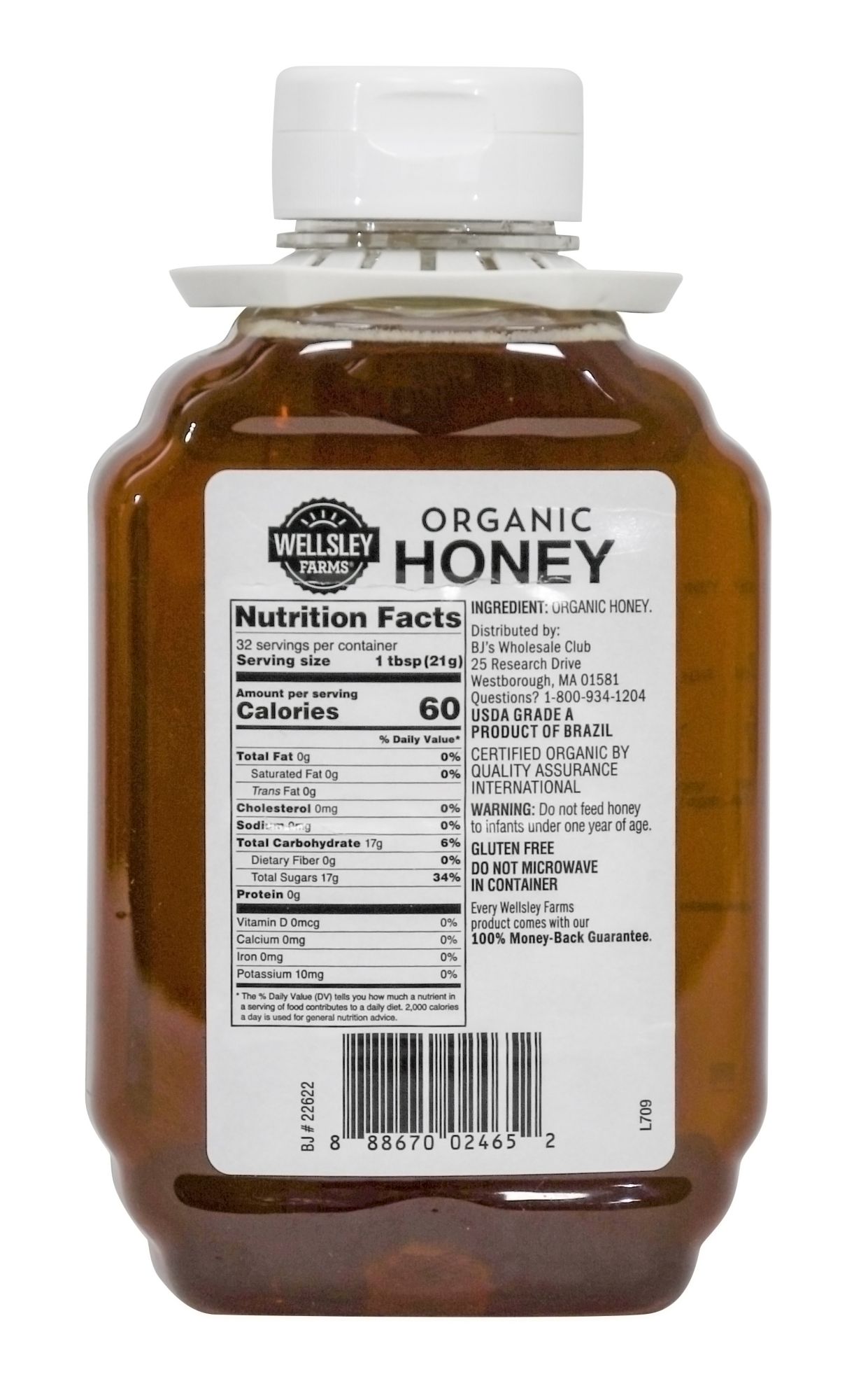 100% organic honey from Brazil Liquid honey is honey that has been separated by filtering and is free from visible crystals Honey is prepared and packed under sanitary conditions in accordance with good manufacturing practices Meets USDA Grade A standards for extracted honey Gluten free All-natural Kosher Shelf life: 365 days Finished product has pollen Warning: Infants under 1 should not consume honey Includes three 24 oz. jars of honey