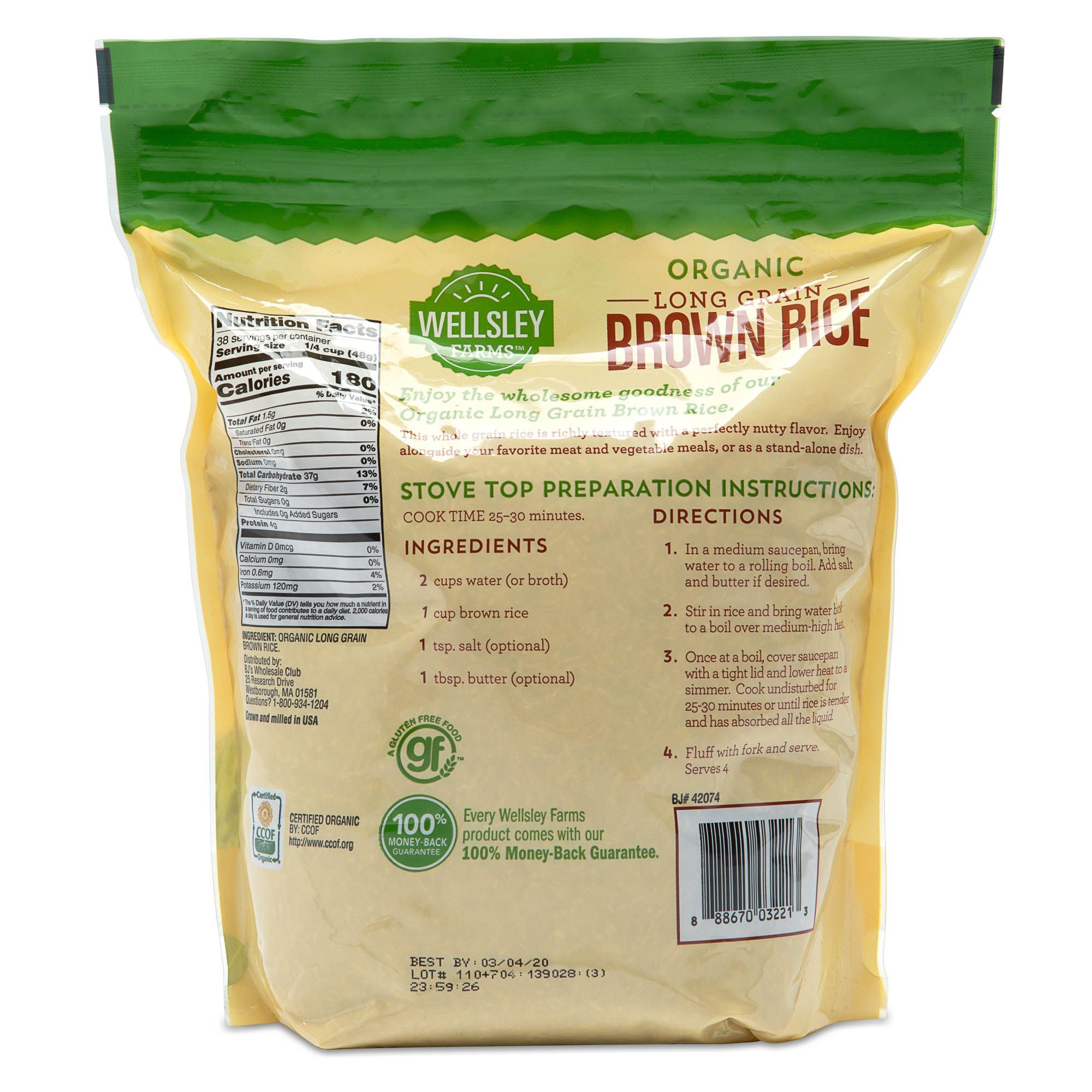 Enjoy the wholesome goodness of Wellesley Farms Organic Long-Grain Brown Rice. This whole-grain rice is richly textured with a perfectly nutty flavor. Enjoy it alongside your favorite meat, vegetables or as a stand-alone dish.
