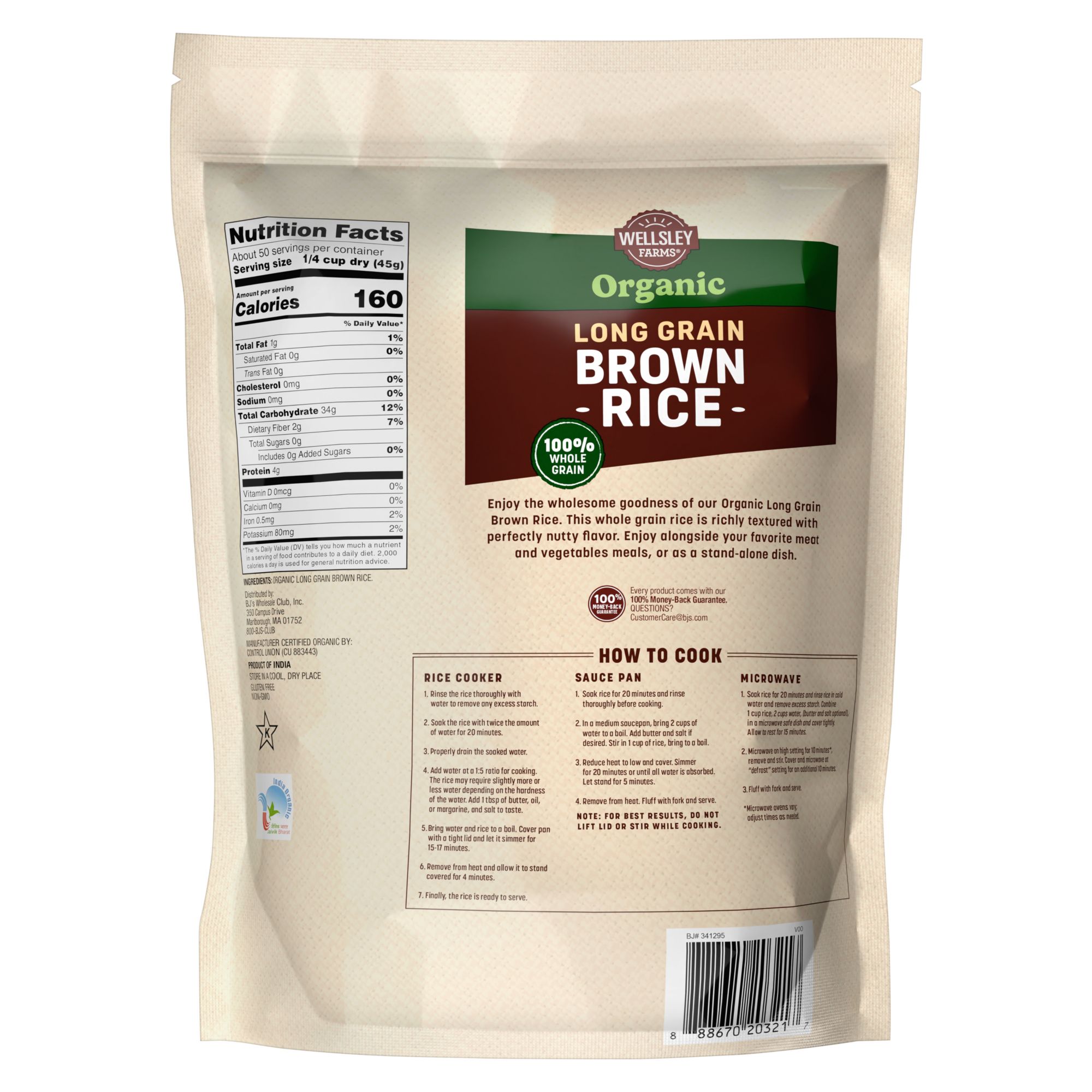 Enjoy the wholesome goodness of Wellesley Farms Organic Long-Grain Brown Rice. This whole-grain rice is richly textured with a perfectly nutty flavor. Enjoy it alongside your favorite meat, vegetables or as a stand-alone dish.