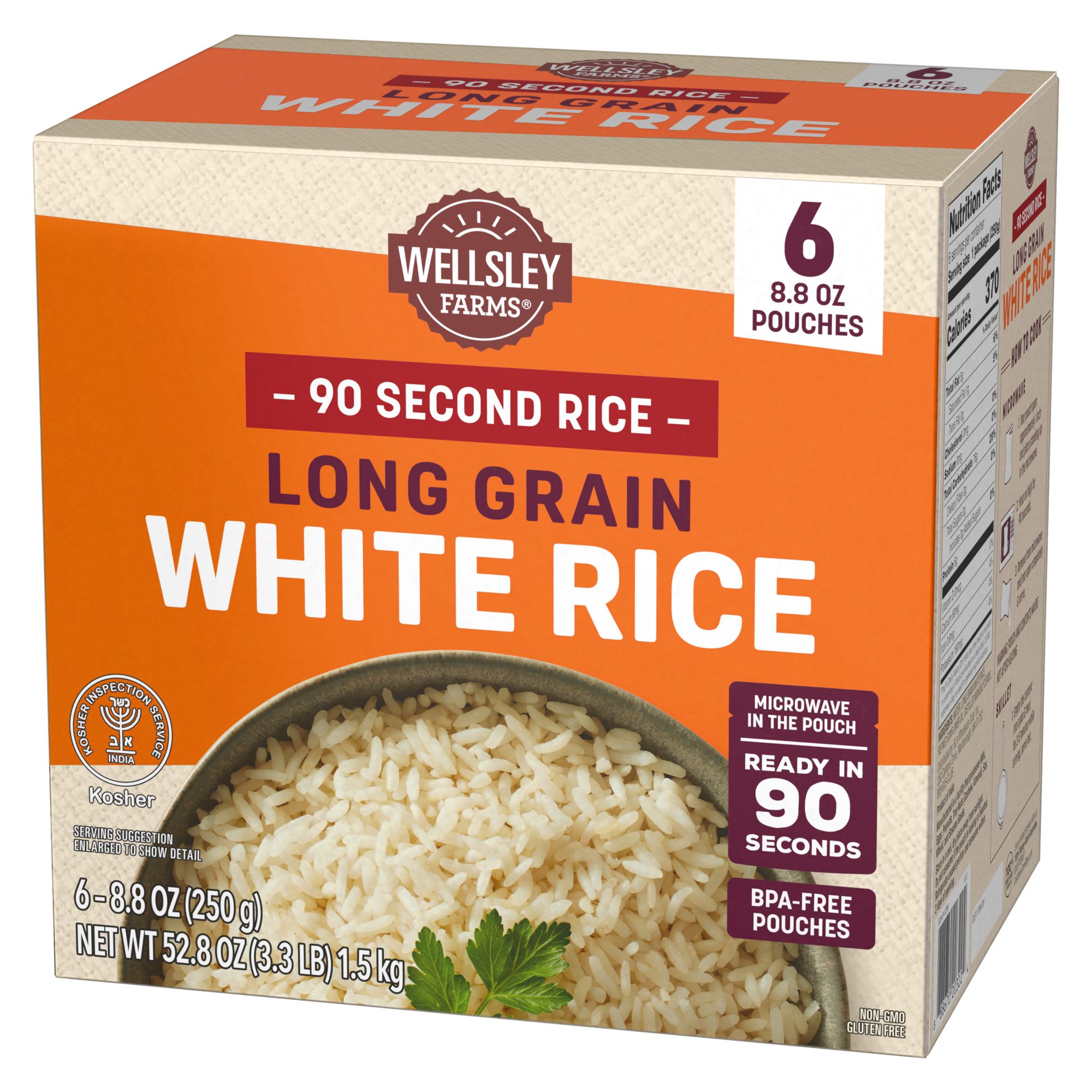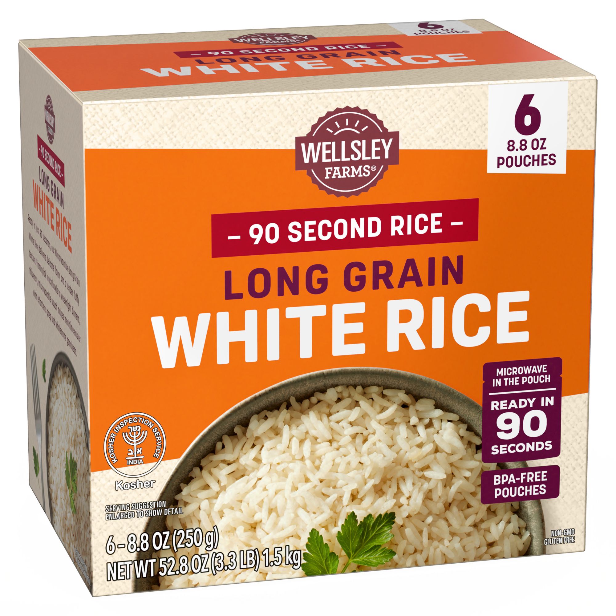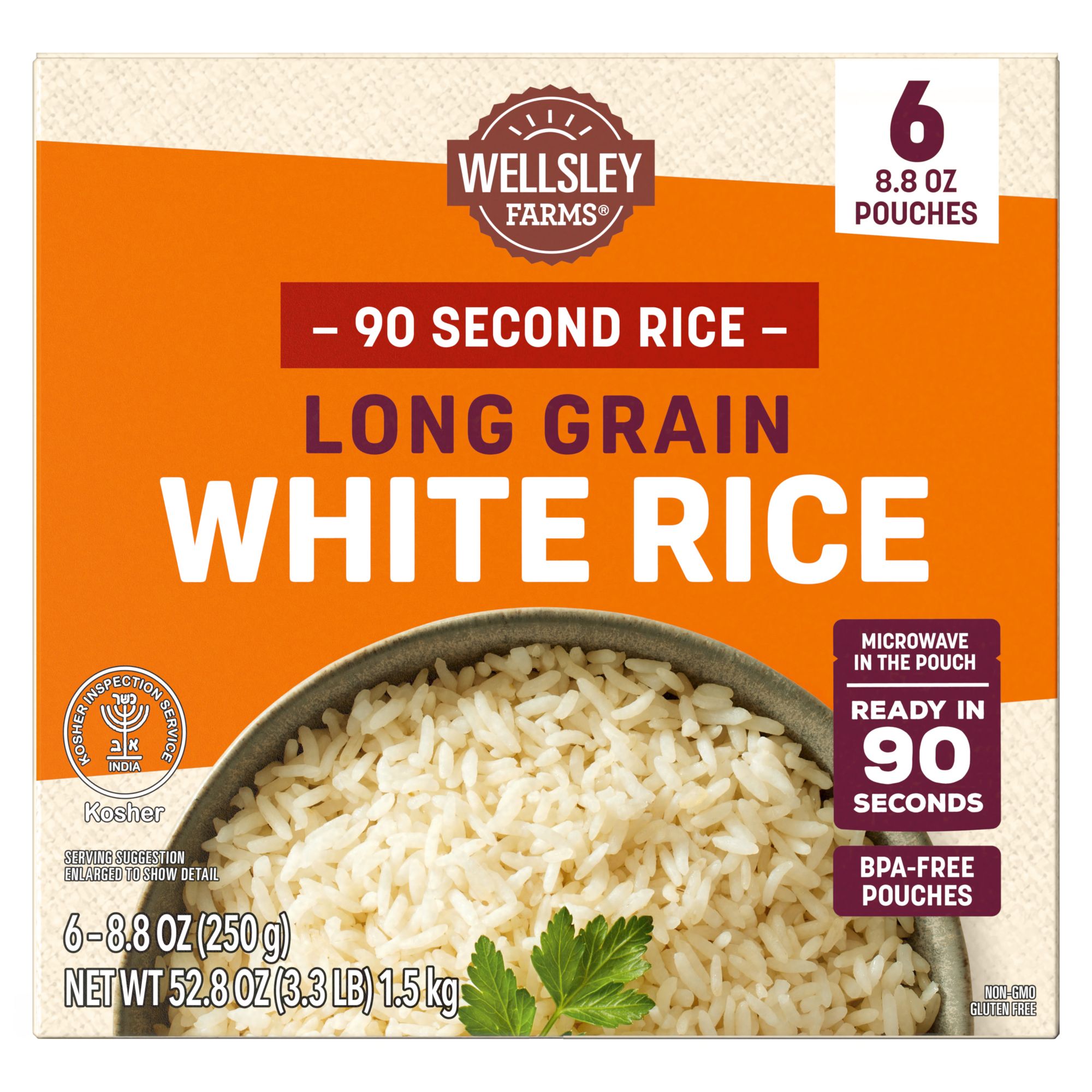 Wellsley Farms Organic Long Grain Brown Rice, Microwave Pouches, Ready In 90 Seconds, 6 pk./8.8 oz.