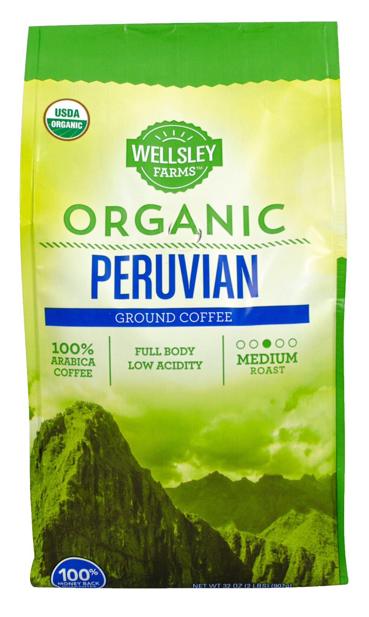 Nutty, bittersweet notes combine with a full body in this Wellsley Farms 32 Oz. Organic Peruvian Ground Coffee to deliver a flavorful cup of coffee. The medium-roast coffee offers low acidity to keep you comfortable while drinking it.