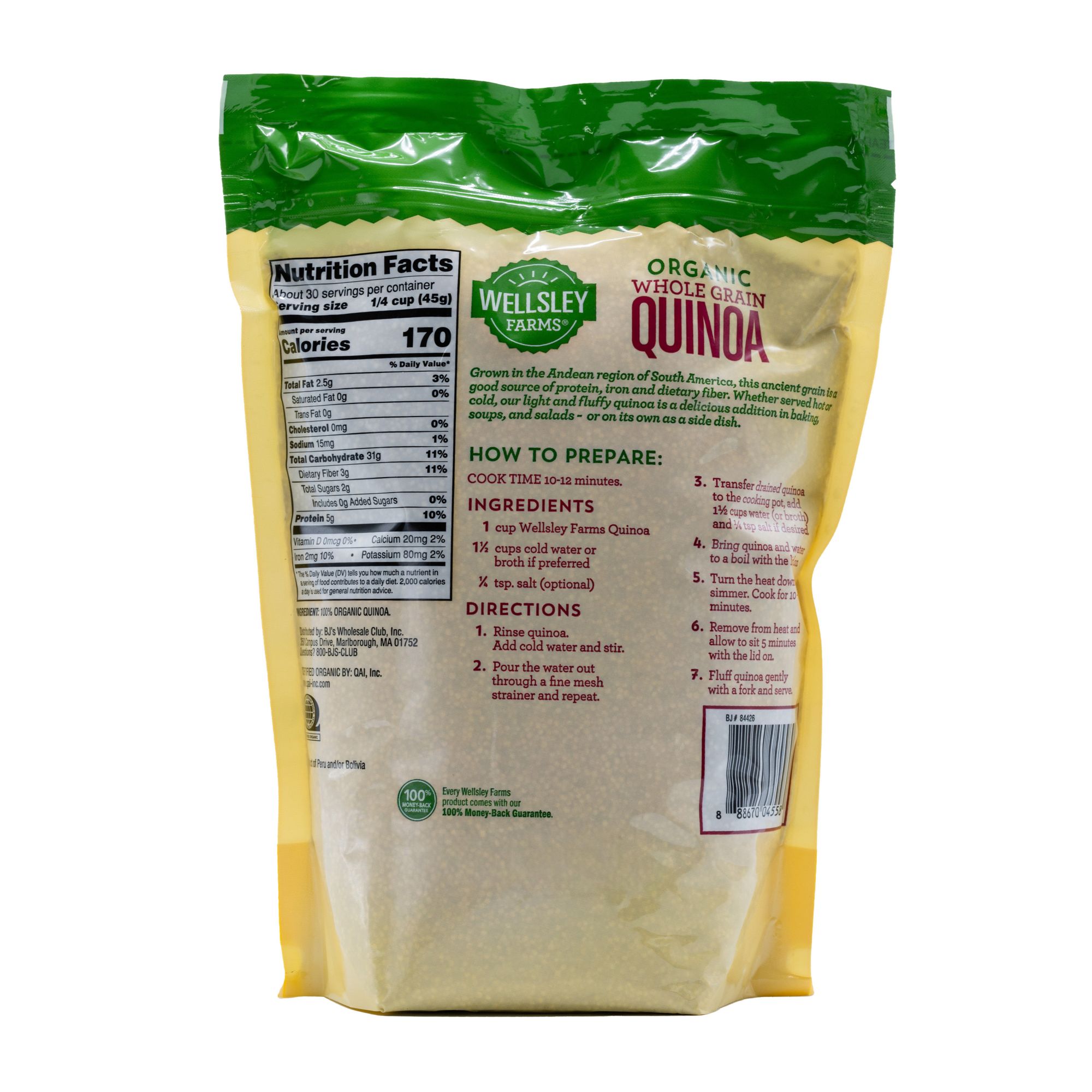 Wellsley Farms Organic Whole Grain Quinoa is a good source of protein and fiber and is GMO-free.