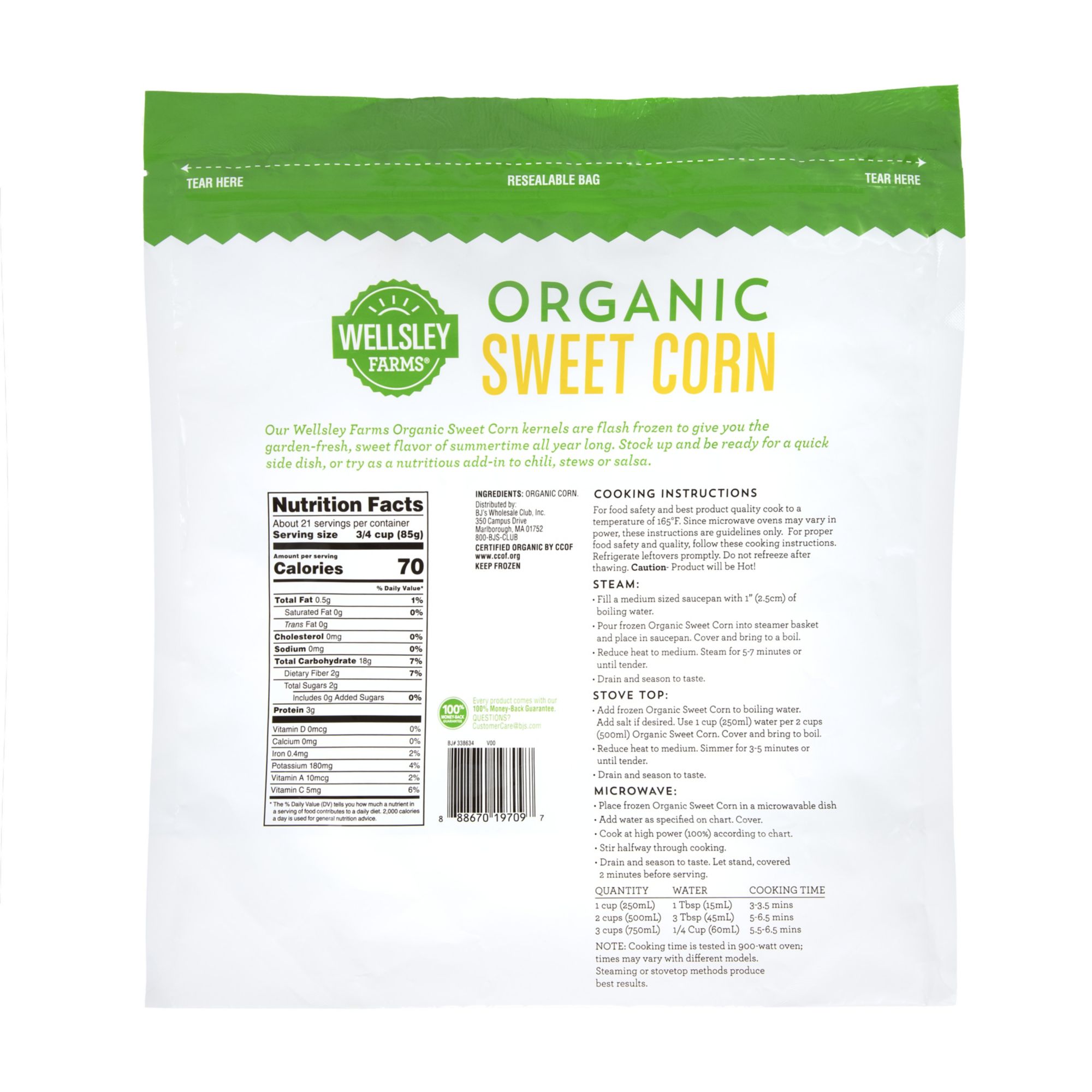 Wellsley Farms Organic Sweet Corn has been flash frozen at its peak of ripeness to provide that straight from the cob flavor. This corn is great as a side dish or as an add-on to chili, stews and soups. No hidden additives or chemicals. Just wholesome goodness as nature intended.