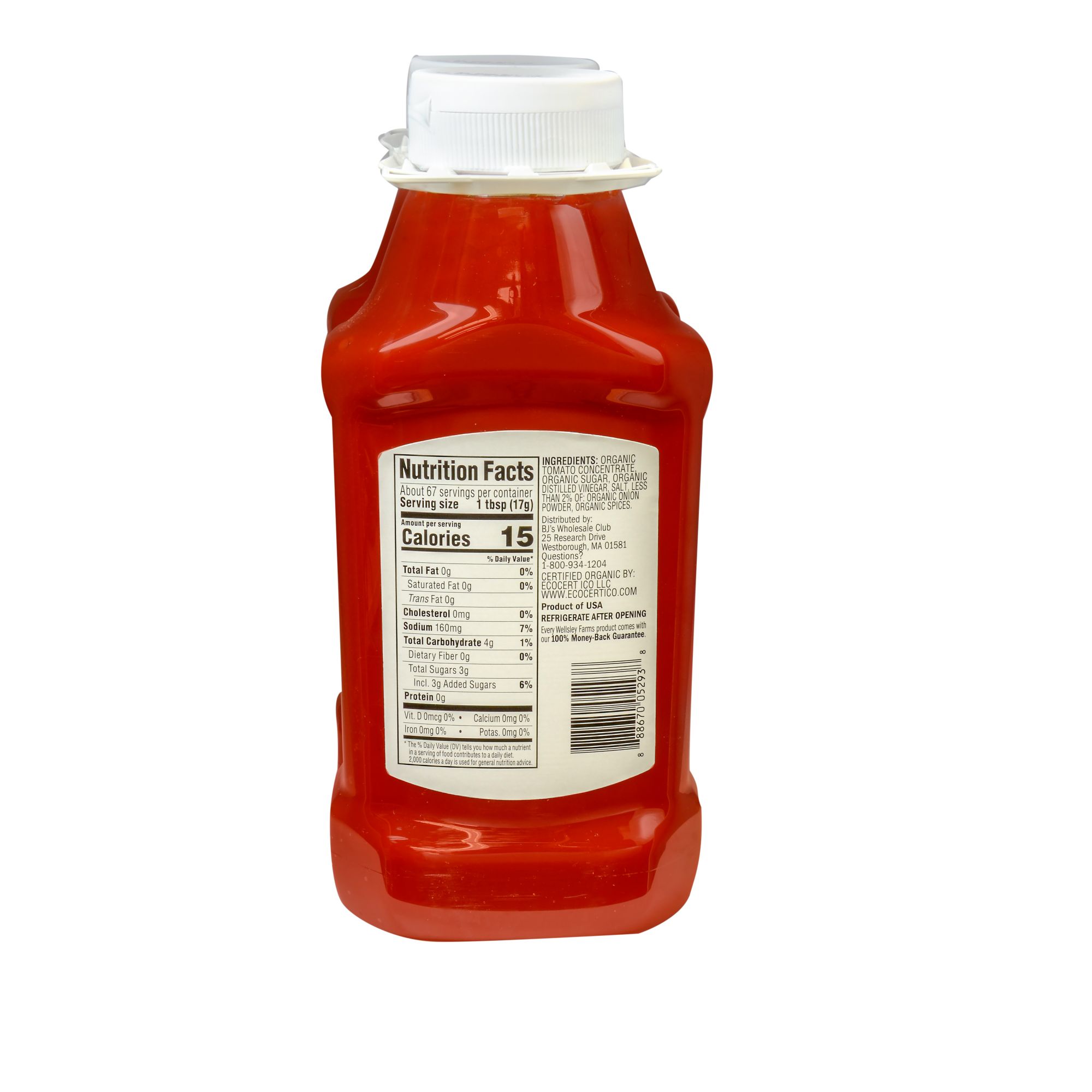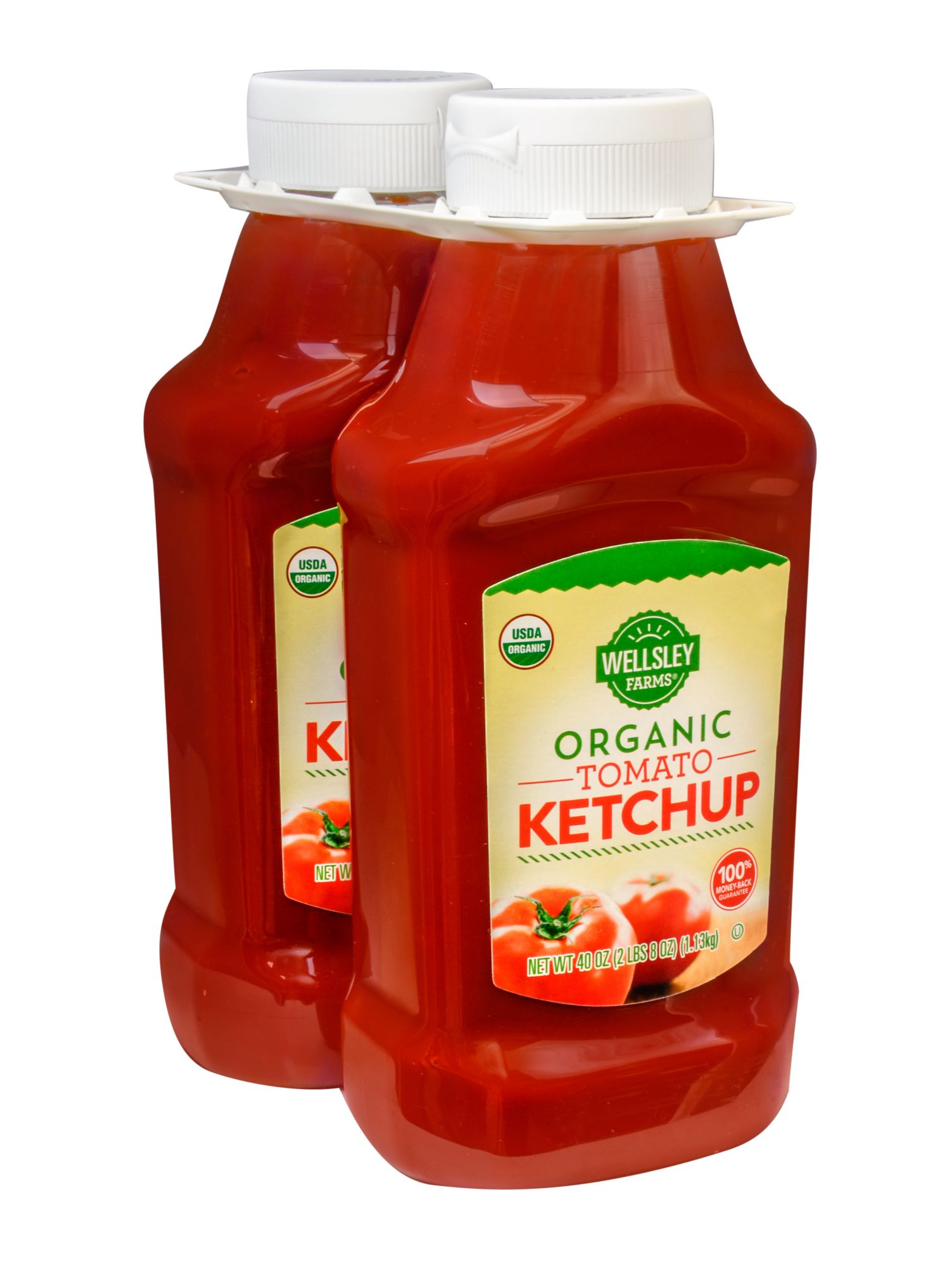 Made from organic vine-ripened tomatoes, cane sugar, vinegar and a proprietary blend of spices Rich and robust Great for dipping or topping off dishes No artificial flavors, colors, dyes or preservatives Non GMO, MSG free and no added trans fat Gluten-free and vegan ingredients Includes two pack of 40-oz. Wellsley Farms Organic Tomato Ketchup