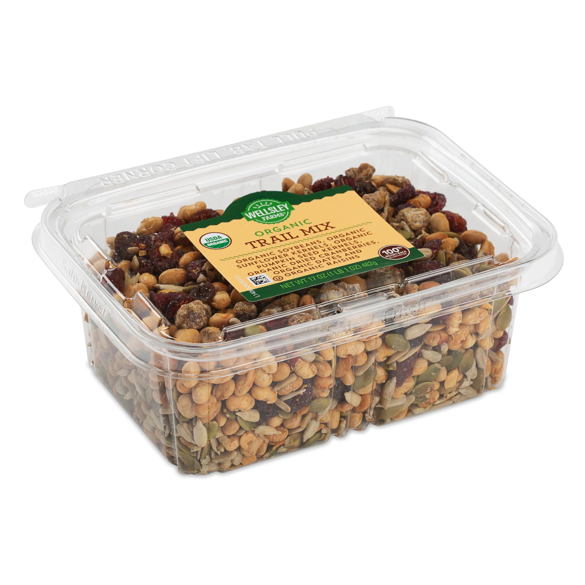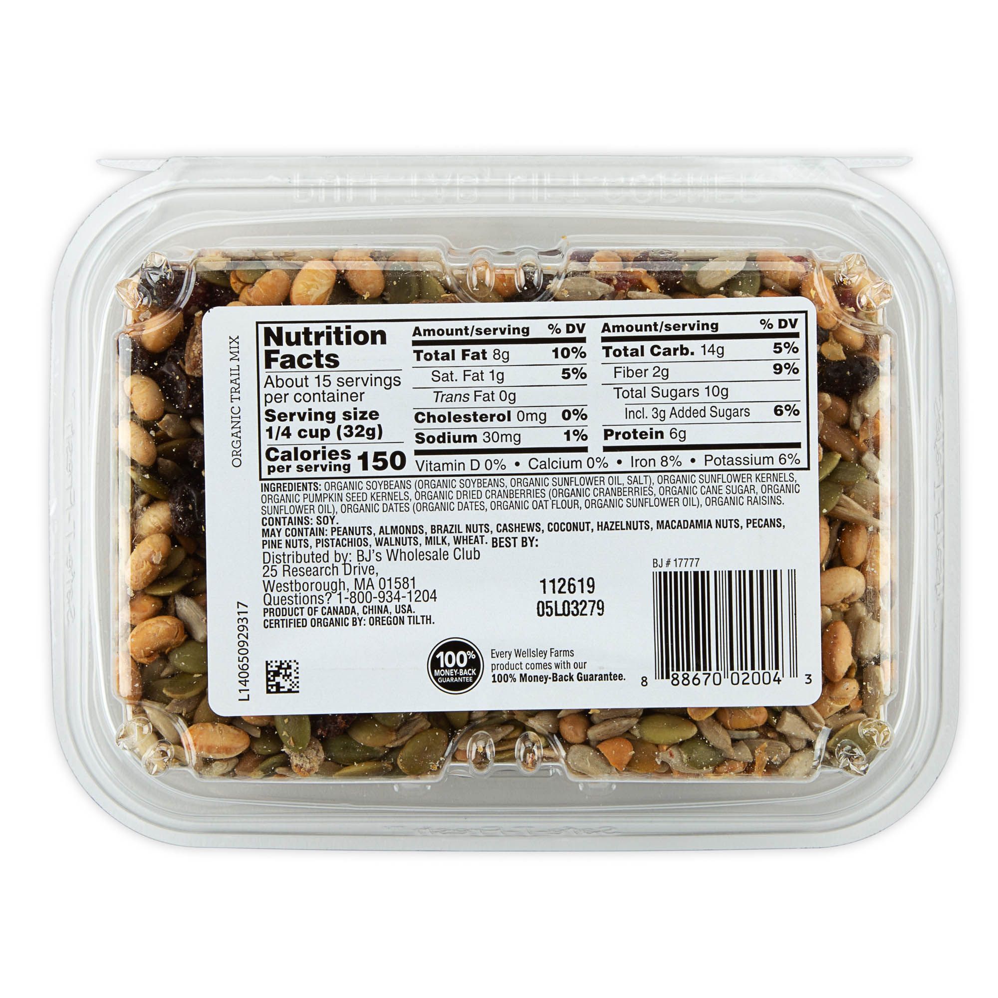 Pack some Wellsley Farms 17 Oz. Organic Trail Mix for your next lunch or road trip. Featuring natural, organic ingredients, this is one snack you can feel good about. It contains pepitas, soy nuts, sunflower seeds and dried cranberries, cherries and dates for a delicious blend of flavors and textures.