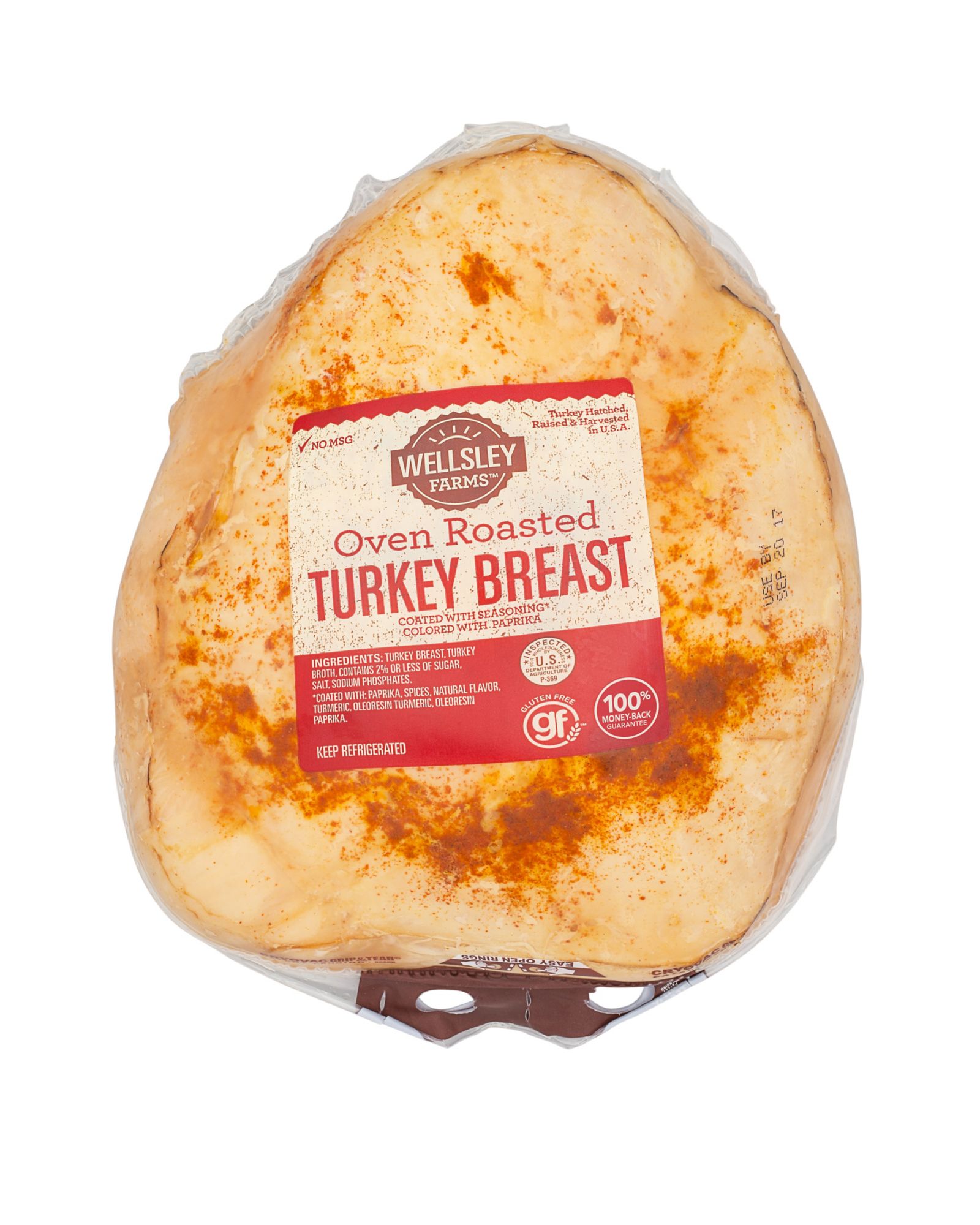 Seasoned with paprika, turmeric, spices and natural flavors, Wellsley Farms Pre-Sliced Oven-Roasted Turkey Breast delivers a powerful punch of flavor. It comes pre-sliced, so you can enjoy it on sandwiches right away.