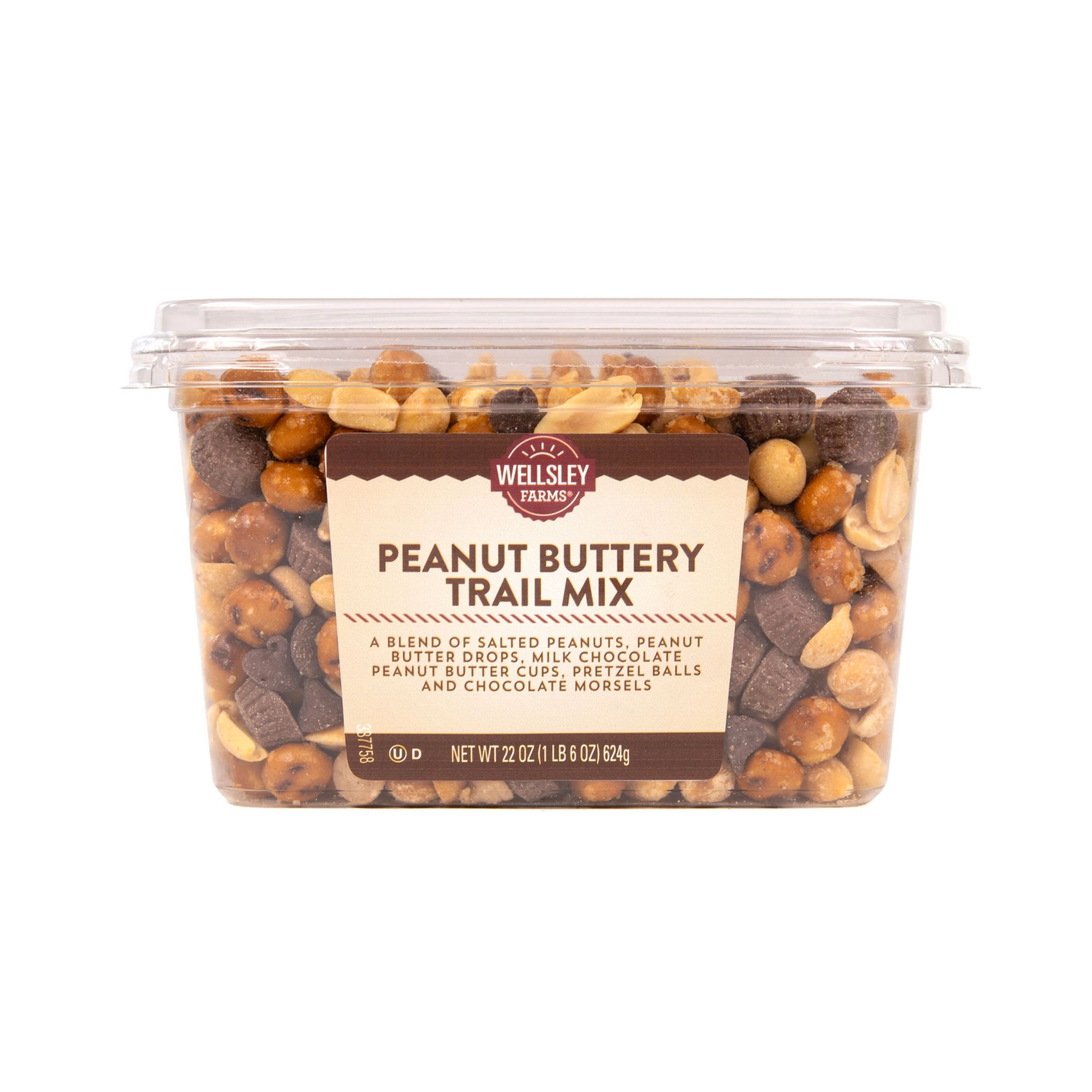 Includes salted peanuts, peanut butter drops, milk chocolate peanut butter cups, pretzel balls and chocolate morsels, 22 oz.