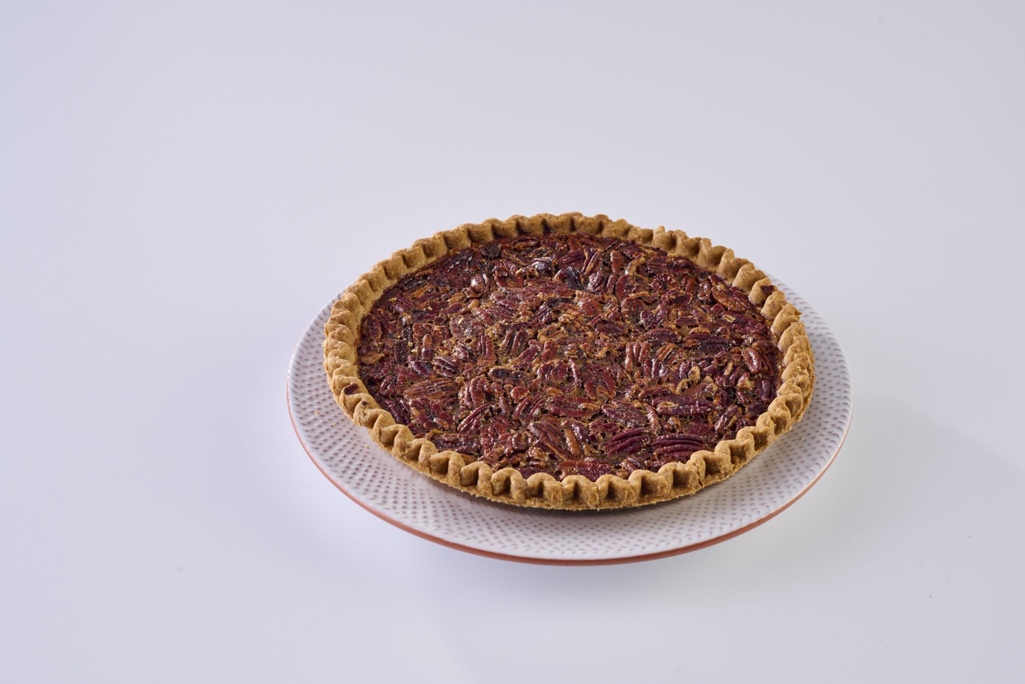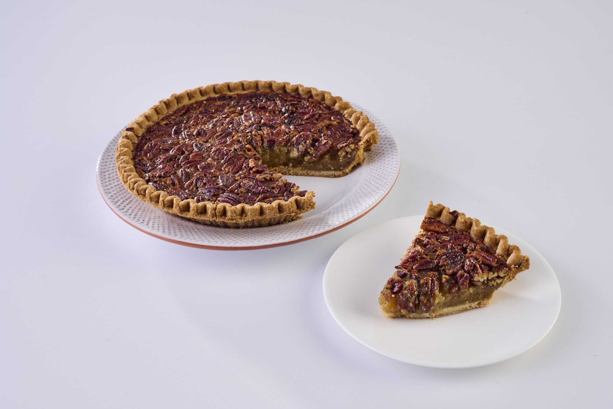 Wellsley Farms Pecan Pie is a 10" pie made with real pecans. This delectable pie has a sweet filling in a delicious flakey crust, topped with crunchy pecans. Take this ready-made pie to go for an easy dessert at your next holiday event.