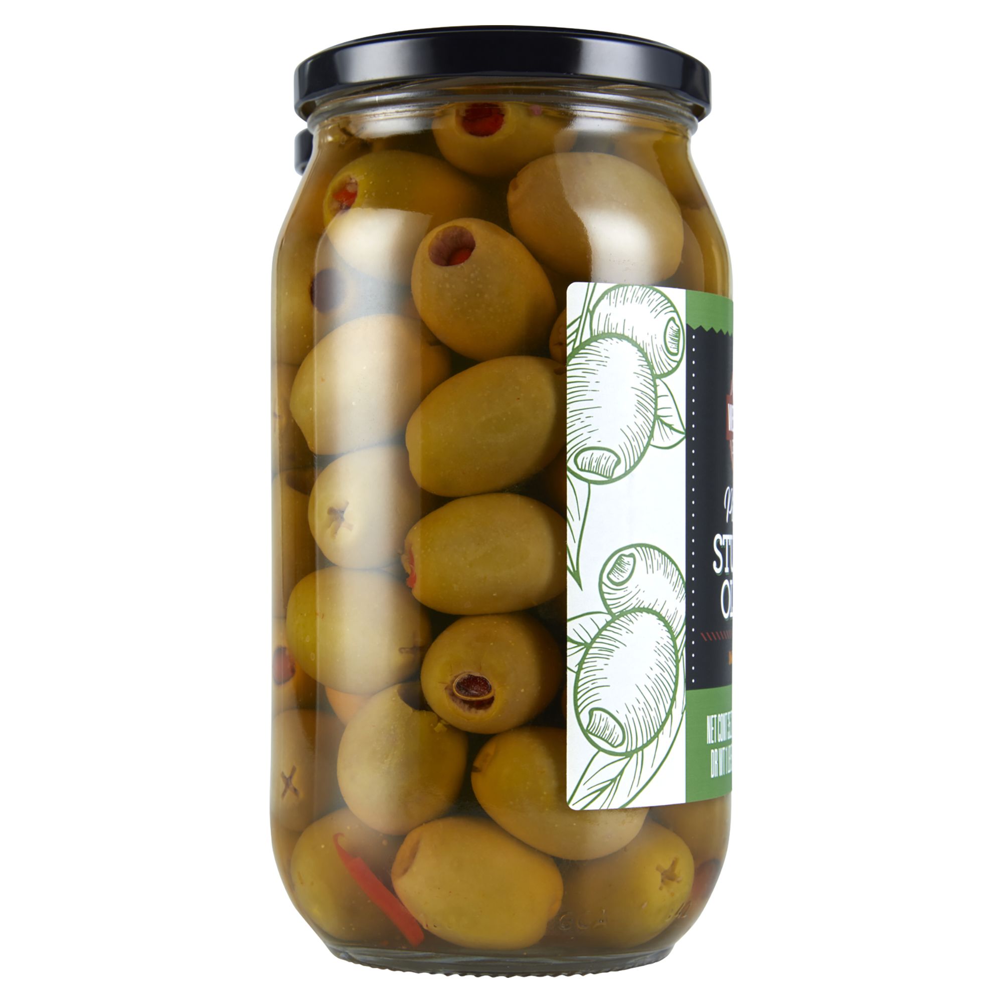 Wellsley Farms Pimento Stuffed Olives are imported from the Halkidiki region of Greece. These pimento stuffed olives are the quintessential olive flavor. Great in a salad or eaten by themselves as a snack. Great addition to a charcuterie board or party platter. These olives can be added to many home crafted cocktails, especially martinis.