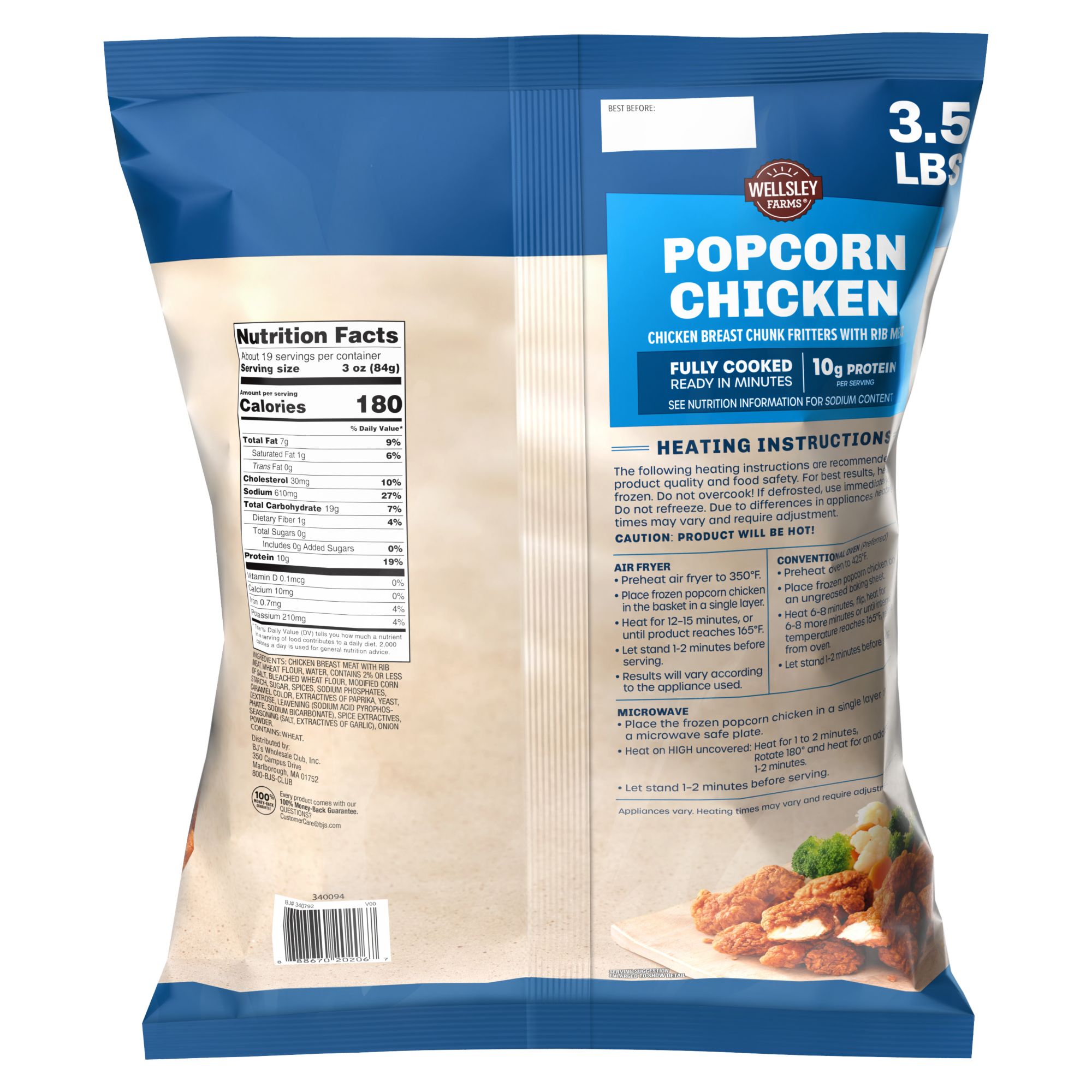 Includes fully cooked popcorn chicken, 3.5 lbs.
