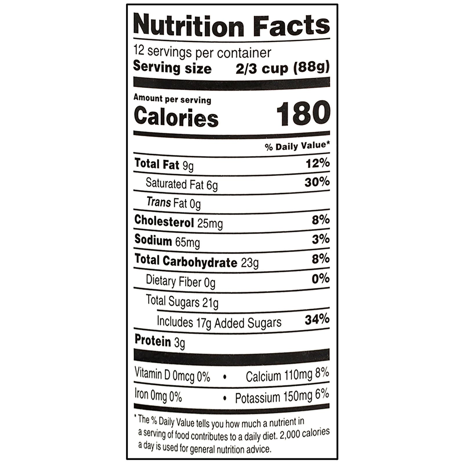 Milk, Cream, Sugar, Cookies (Sugar, Enriched Wheat Flour (Wheat flour, Niacin, Reduced Iron, Thiamin Mononitrate (Vitamin B1), Riboflavin (Vitamin B2), Folic acid, Palm Oil, Soybean Oil, Cocoa (processed with Alkali), Invert Sugar, Corn Flour, Chocolate, Corn Starch, Salt, Baking Soda, Whey, Natural and Artificial Flavor, Soy Lecithin), Vegetable Gum (Tara Gum), Natural Flavor.