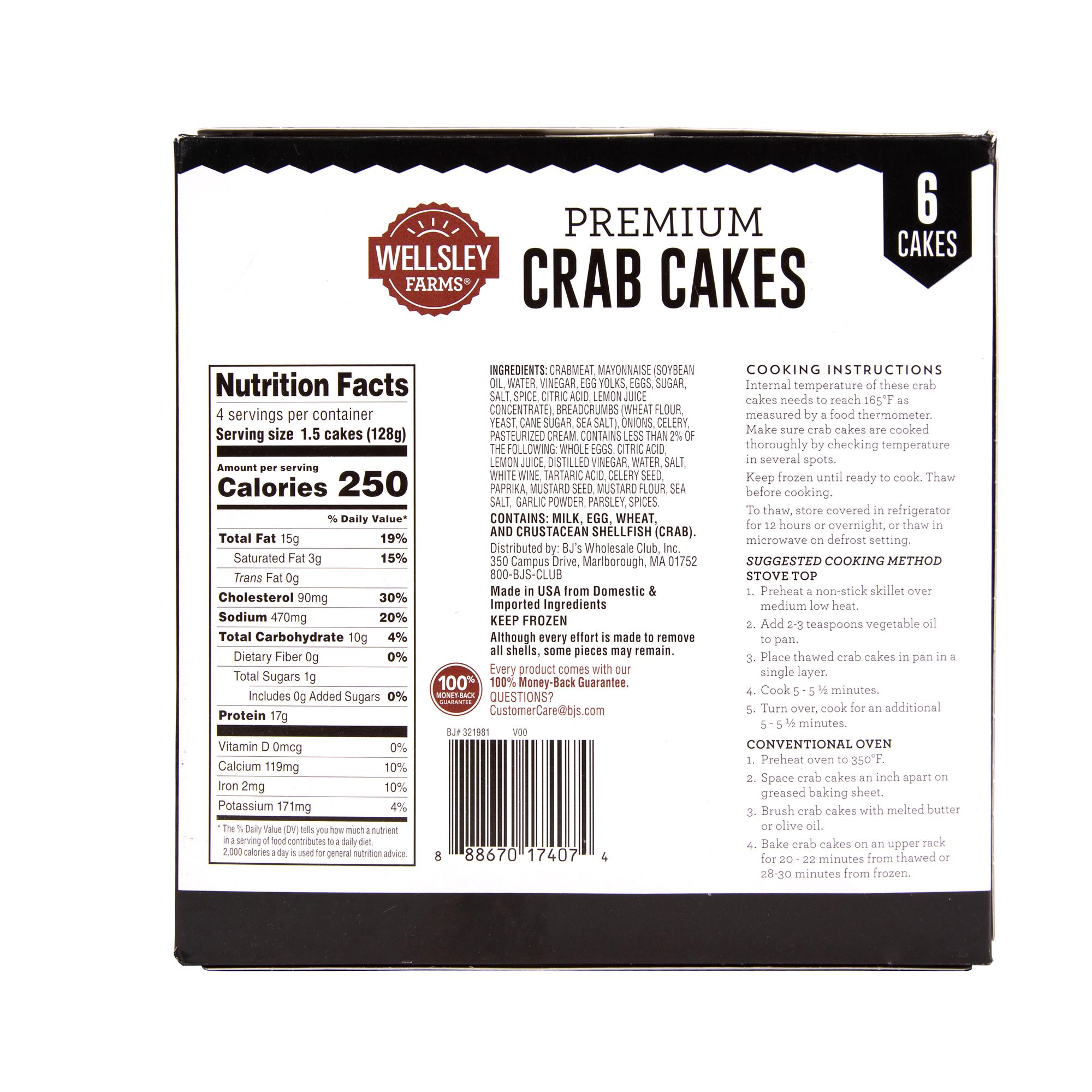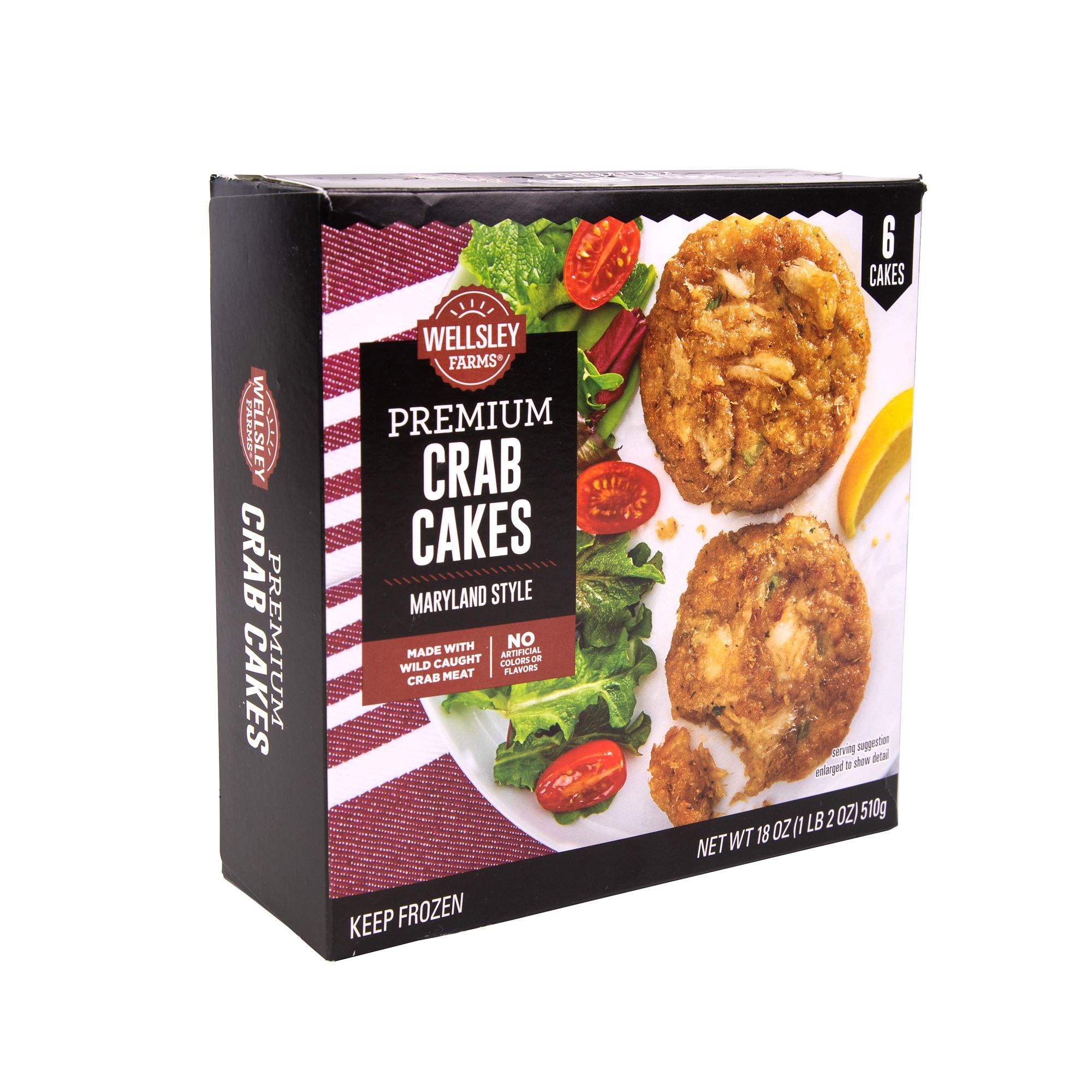 Wellsley Farms Premium Crab Cakes are made with real wild caught crab meat in a traditional Maryland-style spice blend. These are six restaurant-quality are packed with crab meat and can be conveniently and easily cooked on your stove top or in your oven. No artificial flavors or colors. Serves 4-6 people.