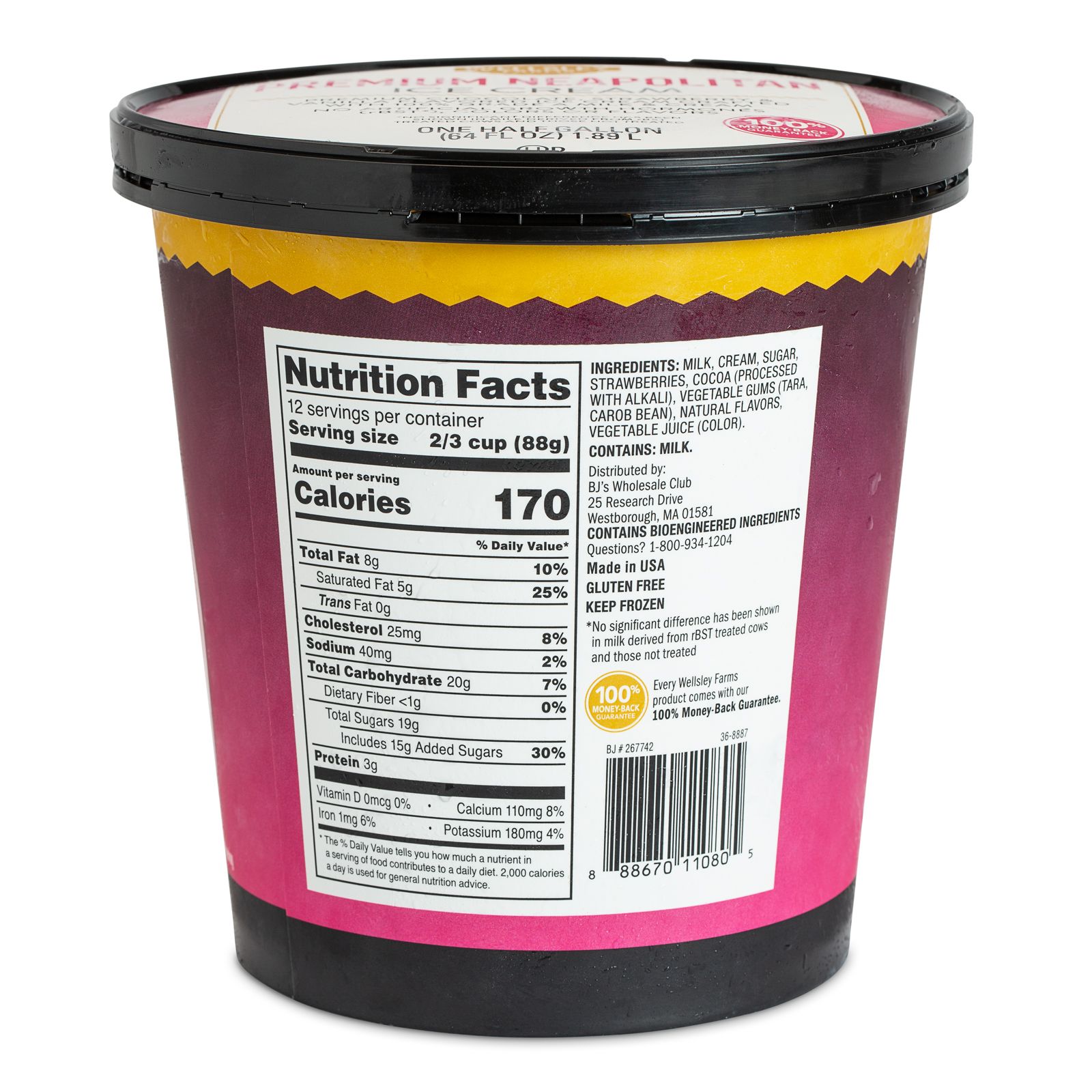 Wellsley Farms Premium Neapolitan Ice Cream is a classic dessert that will please the entire family. The sweet and smooth vanilla ice cream pairs perfectly with the fruity strawberry and the rich Chocolate ice cream. Scoop some Neapolitan ice cream in a bowl or in a waffle cone, sprinkle with any toppings of your liking, and enjoy! Enjoy Wellsley Farms Premium Neapolitan Ice Cream pairs with chocolate chips, rainbow sprinkles, candy pieces or fruit, and add some hot fudge, top it off with smooth whipped cream and a cherry, to make your own sundae or even a banana split.