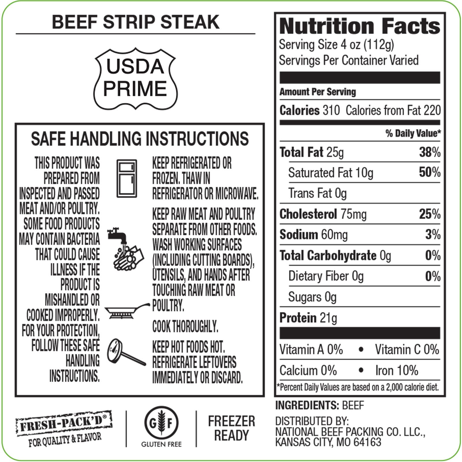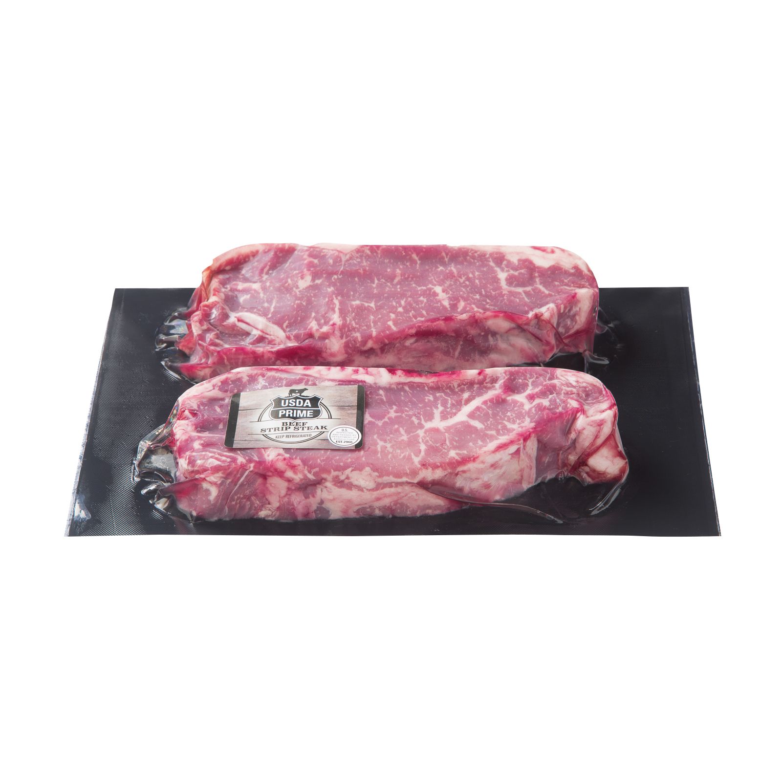 Includes two USDA Prime Grade Boneless Striploins, 2.25-3 lbs.