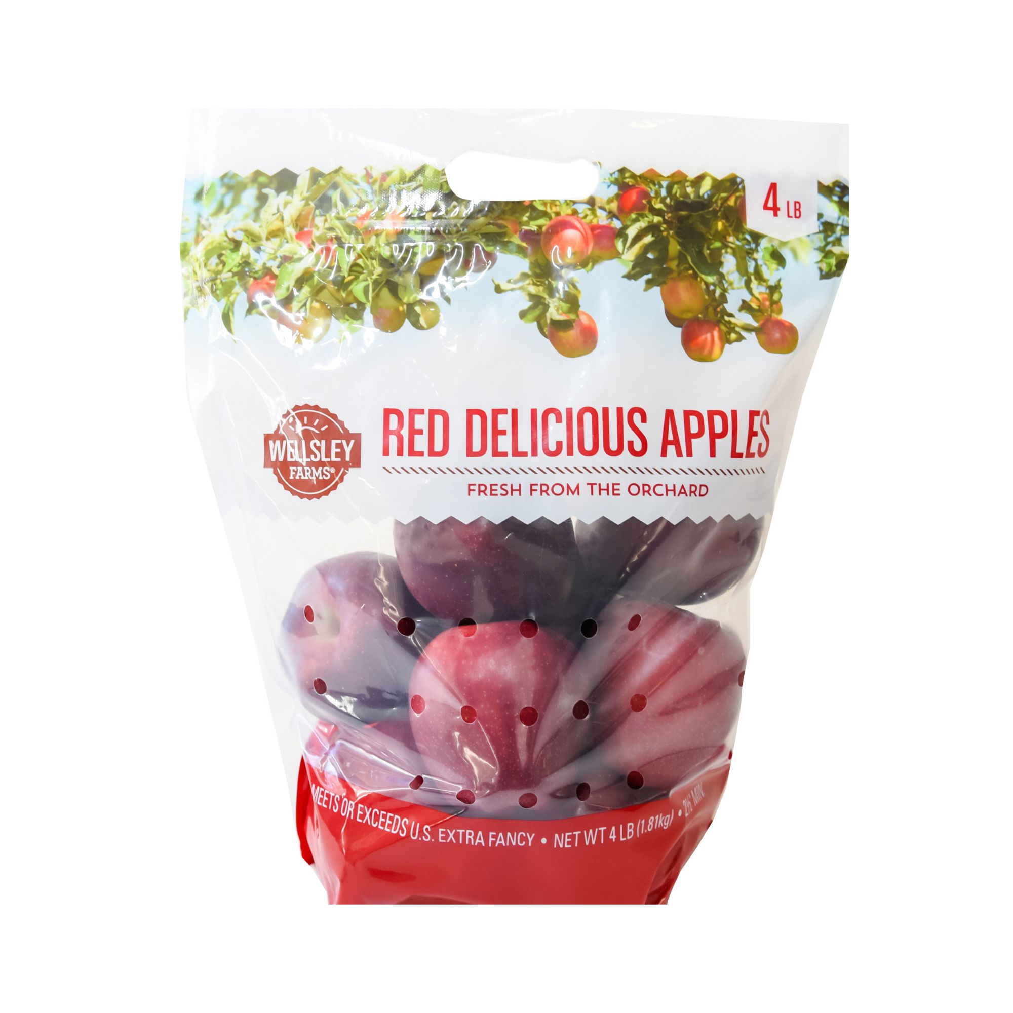 Wellsley Farms Red Delicious Apples are a traditional red apple that can be used in many recipes. Red Delicious apples are well suited to making homemade apple juice or apple cider, or added to fresh salads. These hearty apples have a thick outer skin, making them more resistant to bruising than other apple varieties. These apple are nutritionally-rich and make a great snack on the go.