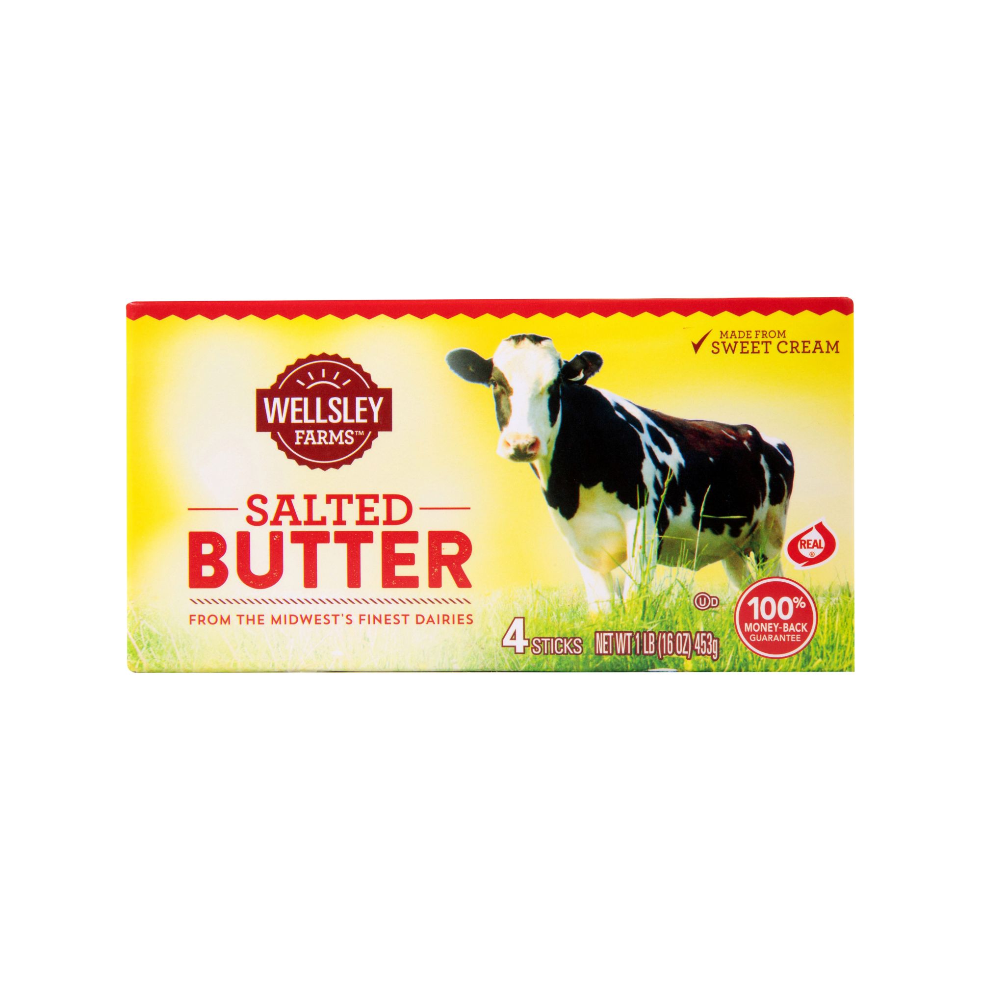 Wellsley Farms Salted Butter is great for baking, cooking, or spreading on your favorite toast or pancakes. Only the highest quality fresh sweet cream is used to produce this butter so its the perfect foundation for any cooking needs. Butter is produced on a European-Style Vacuum Churn for denser, smoother texture.