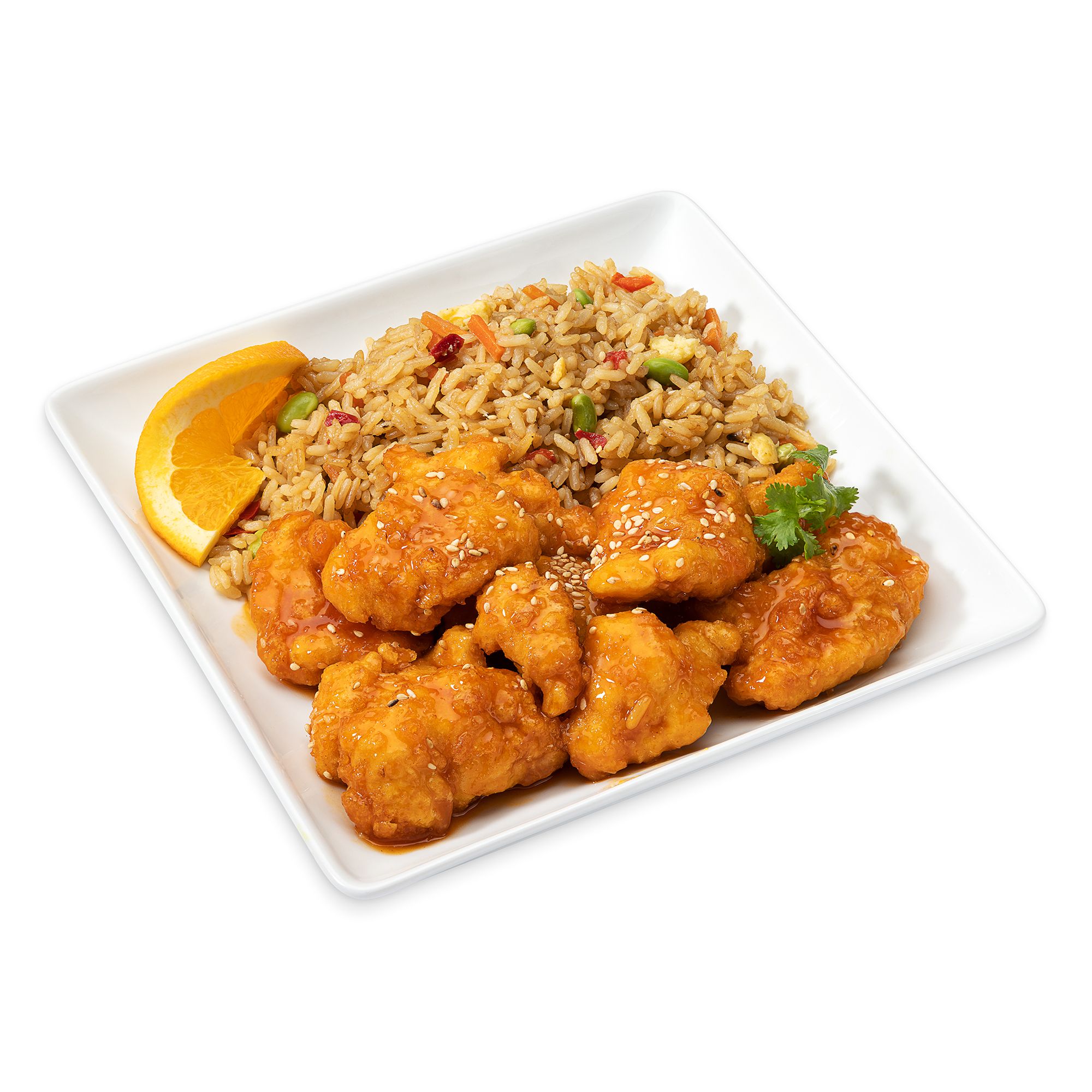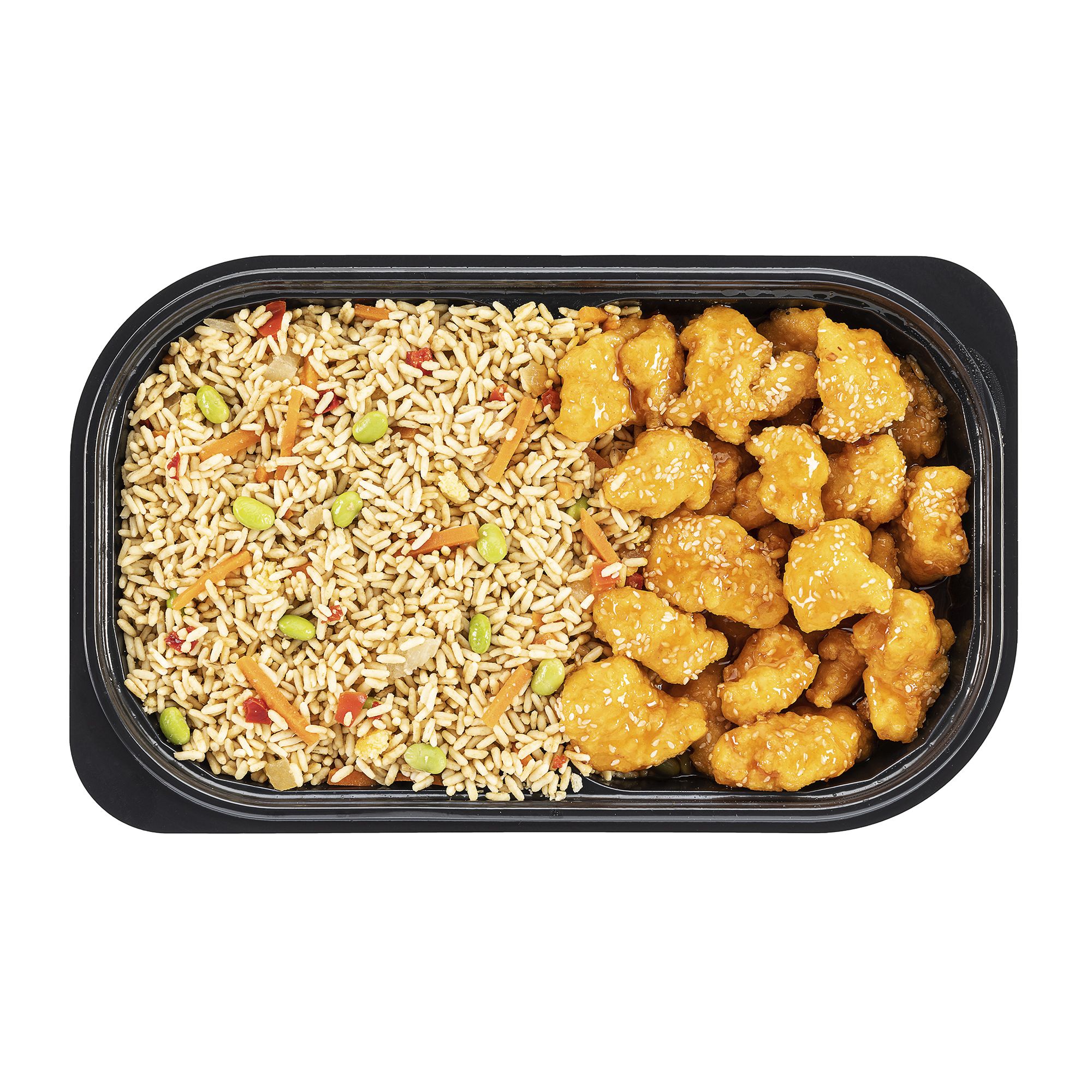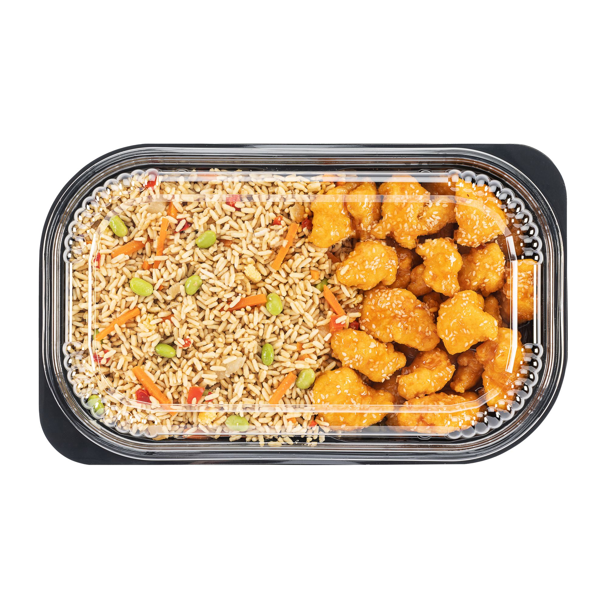 Includes sesame orange chicken with vegetable fried rice, 3.2-3.4 lbs.