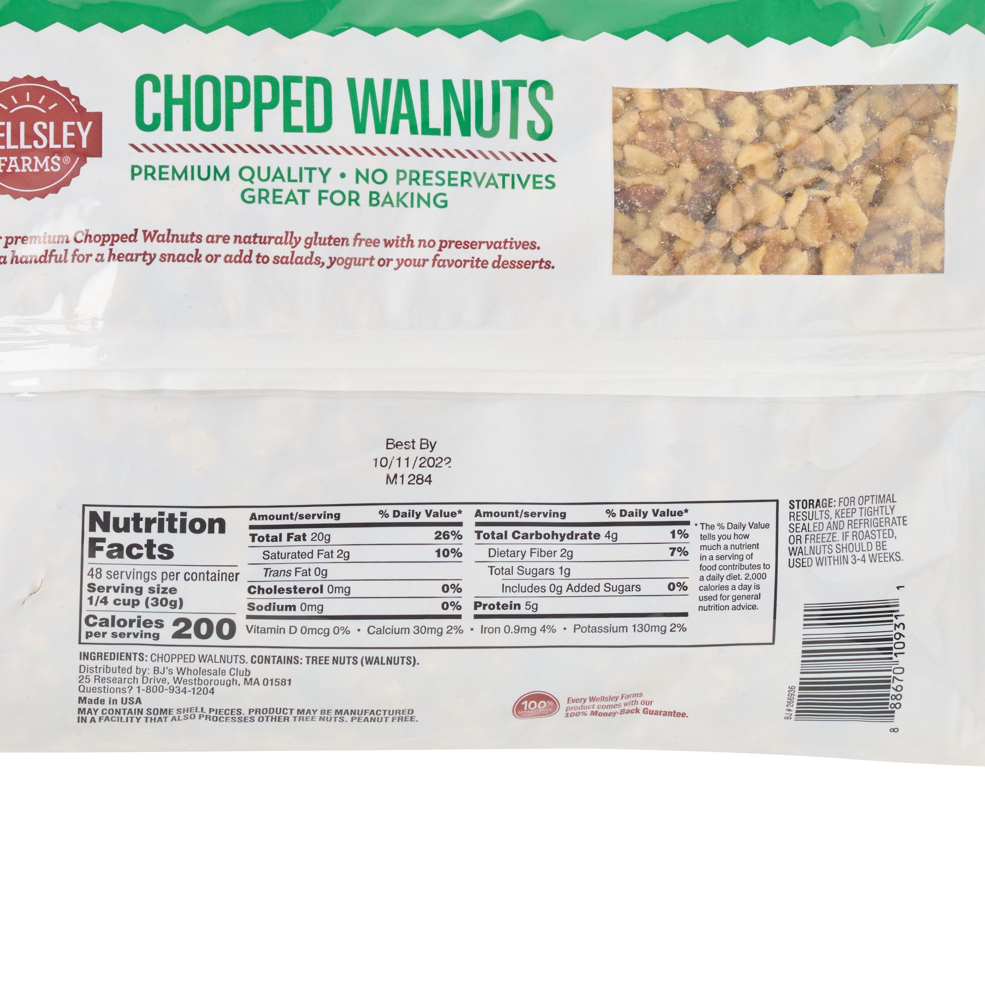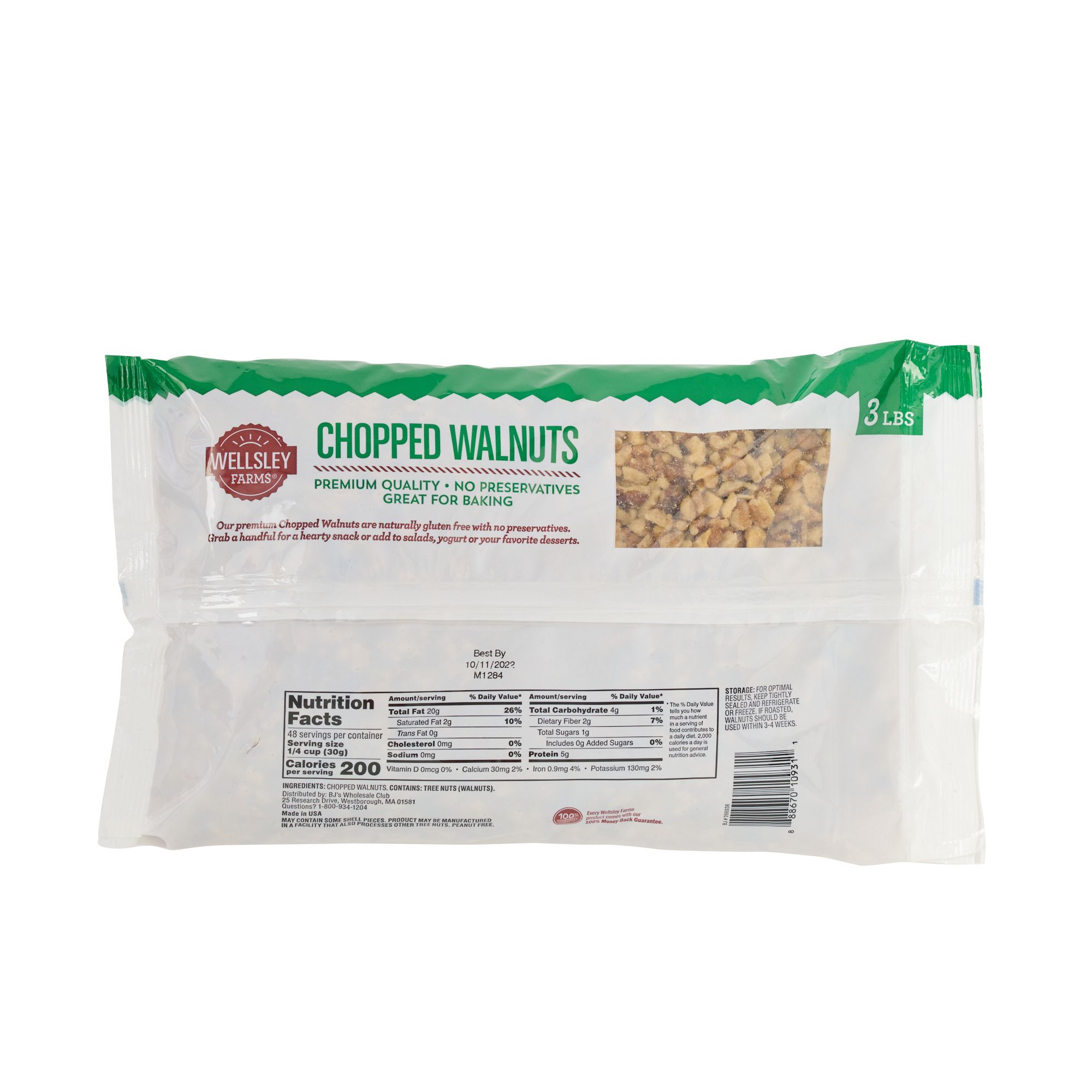 Premium quality California grown No preservatives Plant based Includes 3 lbs. Wellsley Farms chopped walnuts