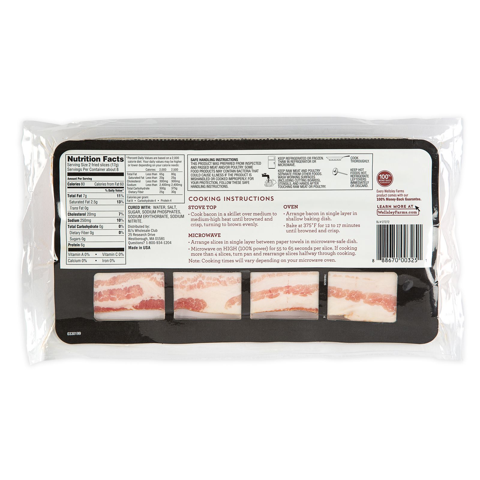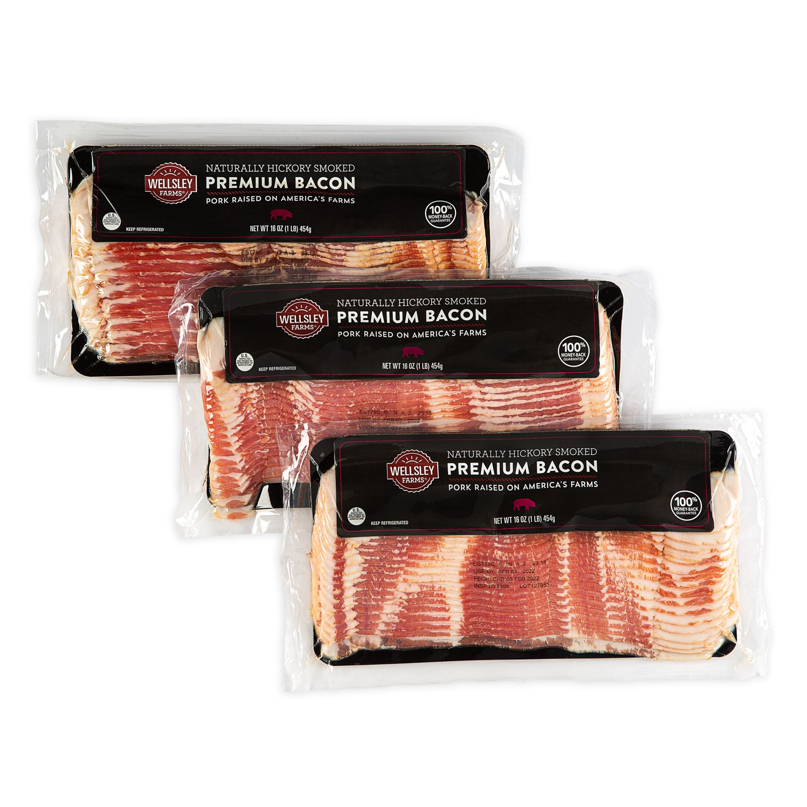 Wellsley Farms sliced bacon is carefully selected and hand trimmed Serves as a hardy breakfast any day of the week Includes three counts of Wellsley Farms sliced bacon, 16 oz. each