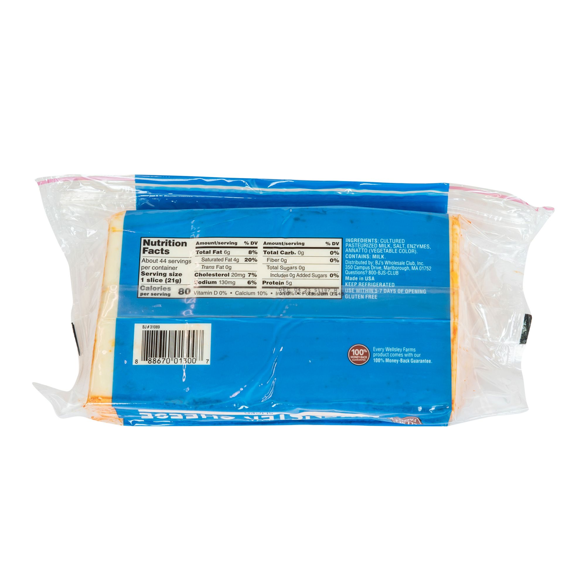 Wellsley Farms Sliced Muenster Cheese is perfect for melting on burgers, sandwiches, and eggs. These pre-cut slices in a large pack are perfect for backyard barbecues, or even for snacking at home. These slices are made with all natural ingredients.