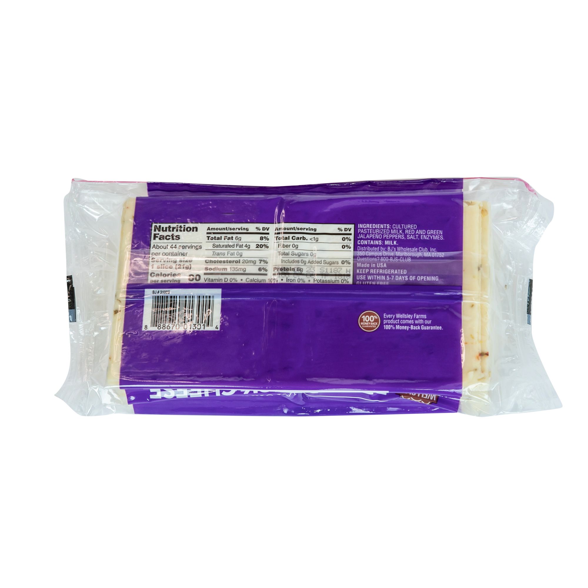 Ingredients: Pasteurized Milk, Red/Green Jalapeno Peppers, Cheese Cultures, Salt, Enzymes.