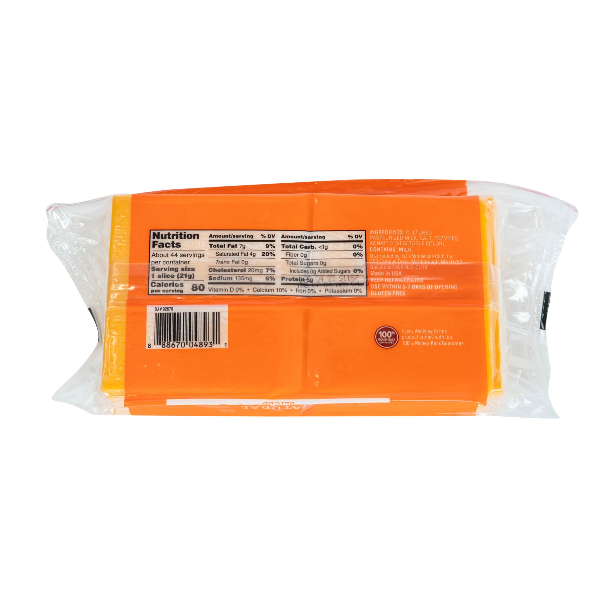 Ingredients: Pasteurized Milk, Cheese Culture, Salt, Enzymes and Annatto (Vegetable Color).