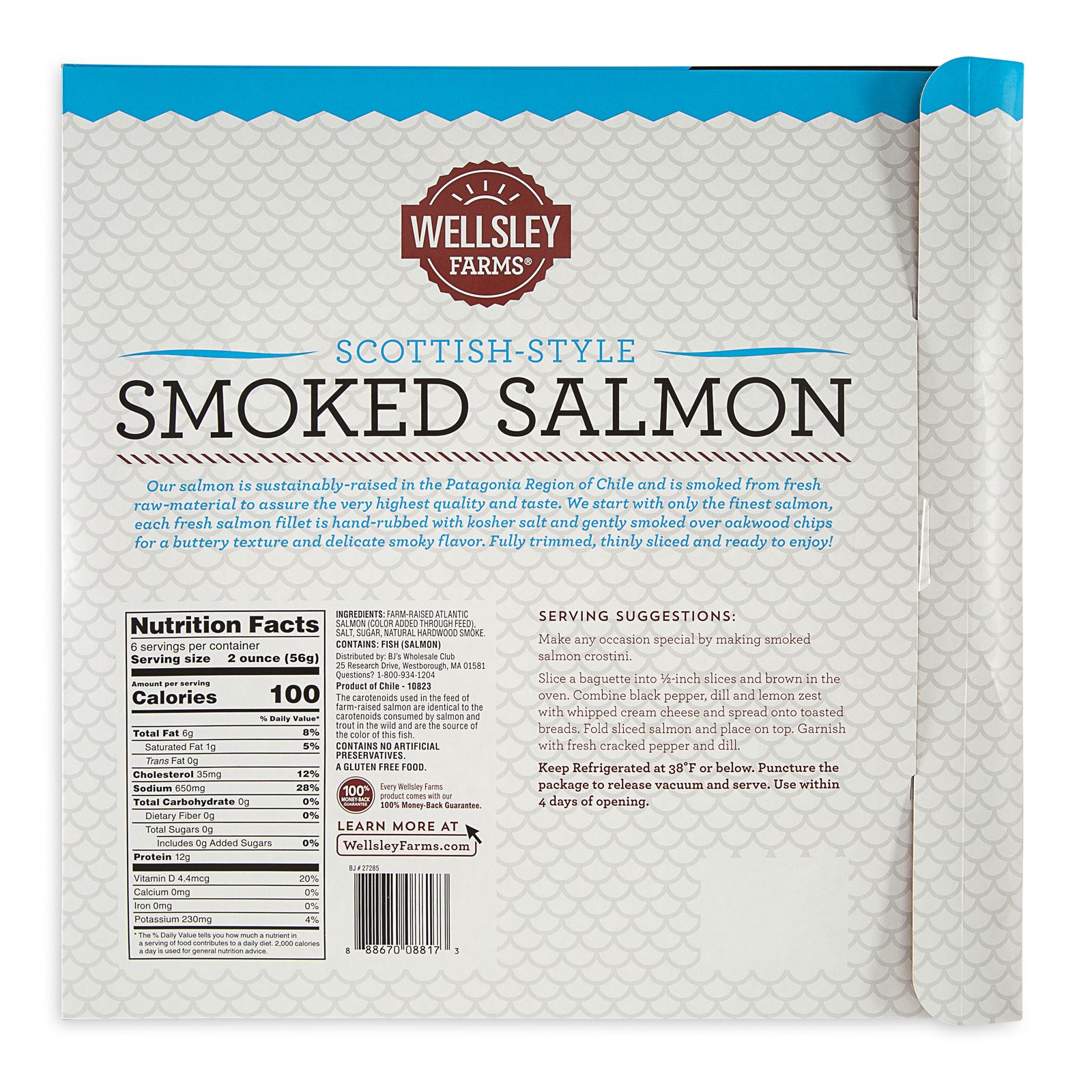 Wellsley Farms takes pride in crafting this premium quality smoked salmon the traditional Scottish way, perfected over generations. They start with only the finest, freshest salmon which is hand-rubbed with kosher salt and gently smoked over Oakwood chips for a buttery texture and delicate smoked flavor.