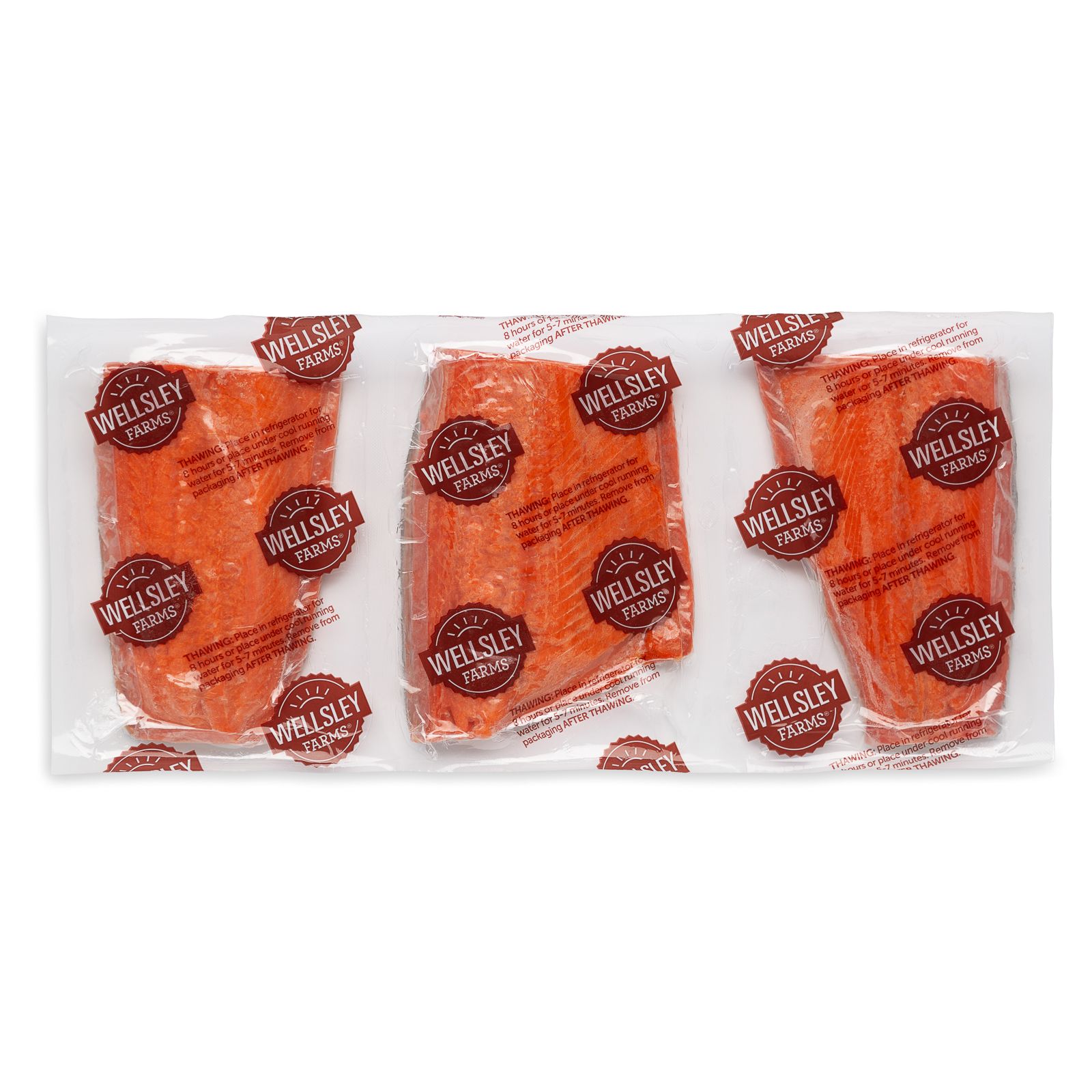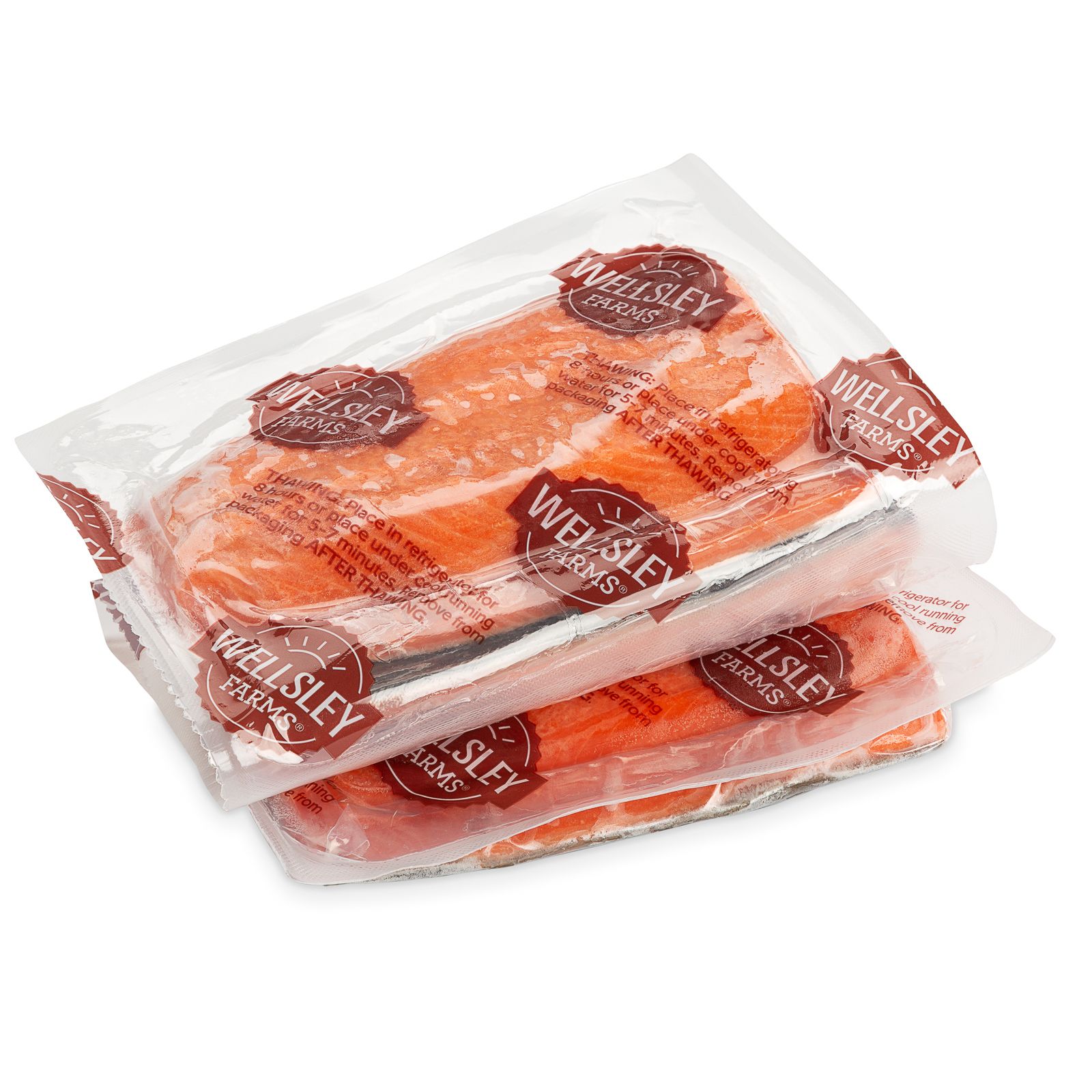 Wellsley Farms frozen sockeye salmon is harvested in the icy cold waters of the North Pacific. Best known for its “amazing†life-cycle, sockeye salmon are born in fresh water and spend their youth in cold water lakes and steams. They then migrates thousands of miles to the ocean where it spends most of its adult life. Sockeye makes for a “full-flavored†dining experience and tastes like a “wild†fish should. Sockeye is a very firm fleshed fish and stays firm after cooking. Simple cooking techniques work best so to showcase the natural flavor of a wild salmon.