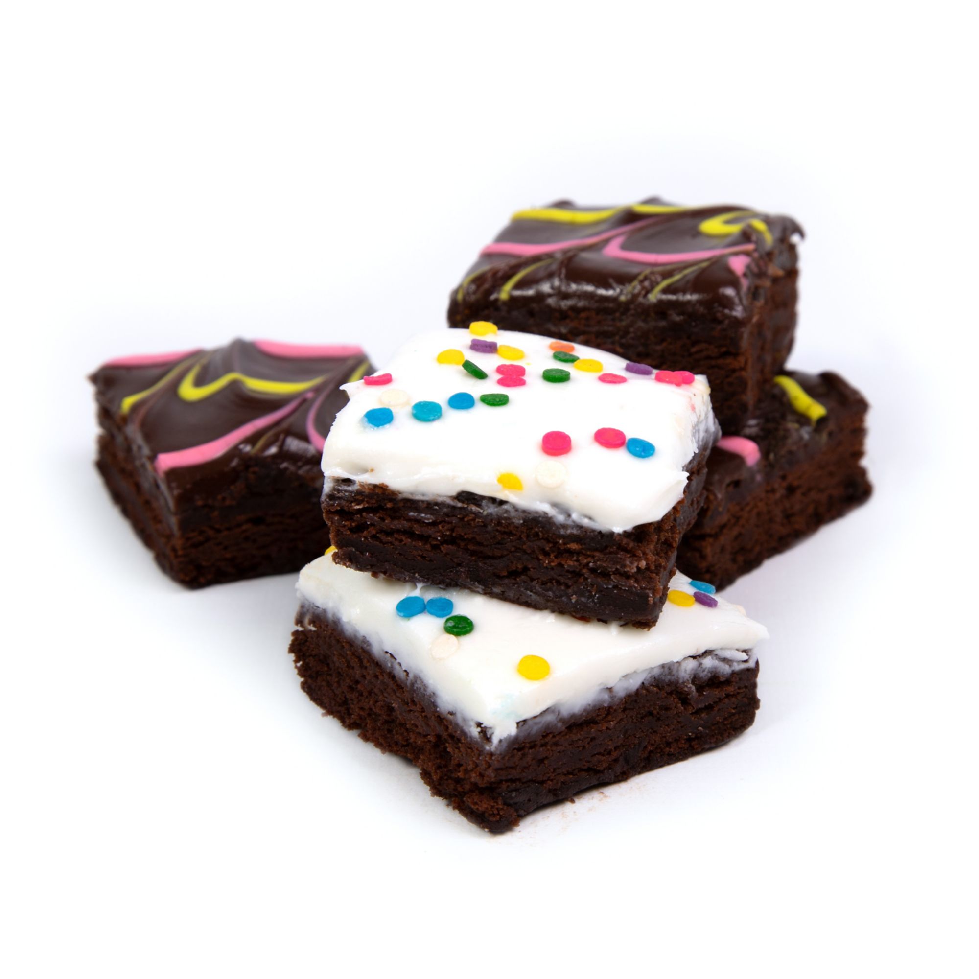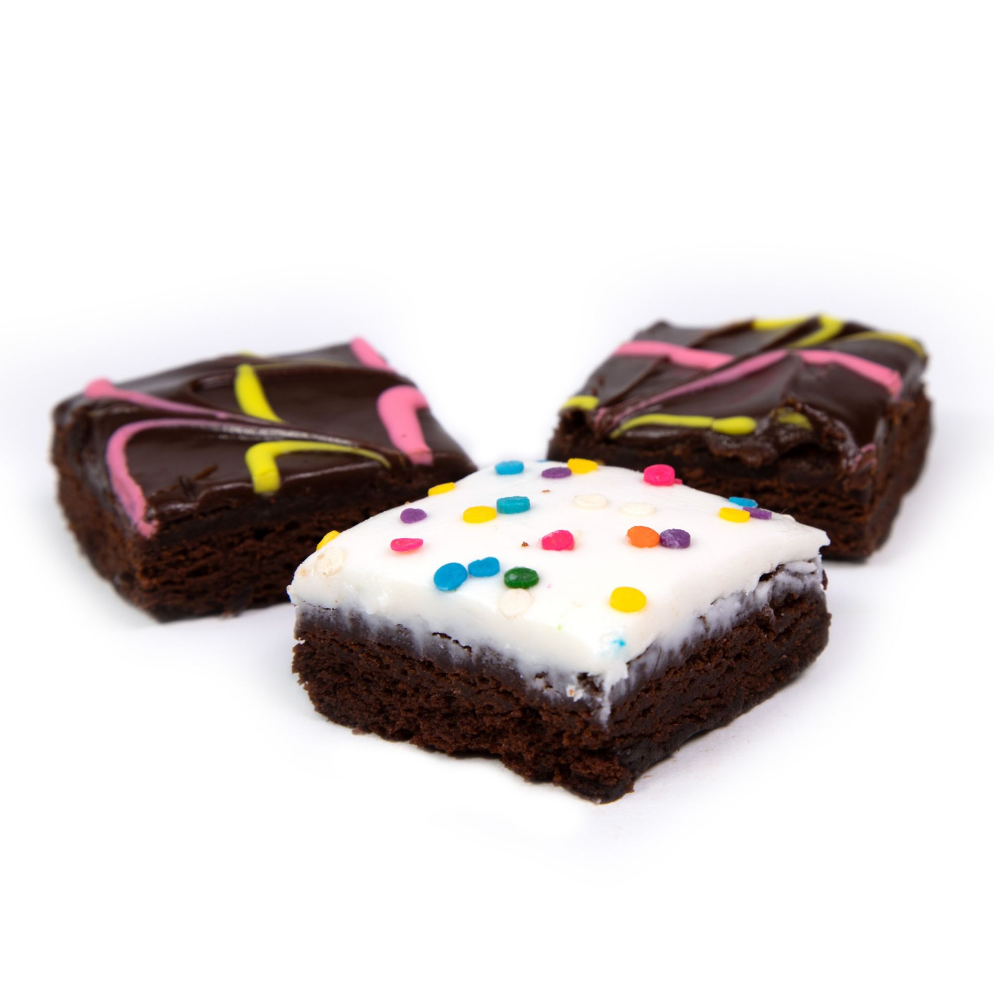 Ingredients Fudge Iced W Pink & Yellow Pull Ingredients: Brownie Base (Sugar, Bleached Enriched Flour [Wheat Flour, Niacin, Reduced Iron, Thiamine Mononitrate, Riboflavin, Enzyme, Folic Acid], Palm Oil, Soybean Oil, Cocoa [Processed With Alkali], Corn Syrup Solids, Contains 2% Or Less Of The Following: Egg Whites, Salt, Natural And Artificial Flavor, Nonfat Dry Milk, Soy Lecithin, Defatted Soy Flour, Cornstarch, Caramel Color, Leavening [Sodium Bicarbonate, Sodium Aluminum Phosphate], Red 40), Fudge Icing (Sugar, Vegetable Shortening [Palm Oil, Hydrogenated Cottonseed Oil], Water, High Fructose Corn Syrup, Corn Syrup, Cocoa, Cocoa [Processed With Alkali], Soybean Oil, Contains 2% Or Less Of Each Of The Following: Mono- And Diglycerides, Polysorbate 60, Salt, Soy Lecithin, Potassium Sorbate [Preservative], Citric Acid, Natural And Artificial Flavor), Water, White Icing (Sugar, Water, Corn Syrup, Palm Oil, High Oleic Sunflower And/or Canola Oil, Contains 2% Or Less Of: Hydrogenated Cottonseed Oil, Invert Sugar, Mono- And Diglycerides, Natural And Artificial Flavor, Polysorbate 60, Preservatives [Sodium Propionate, Sorbic Acid], Salt, Soy Lecithin, Soybean Oil, Sulfites, Titanium Dioxide [Color]), Corn Syrup, Pink Drizzle Color [Natural Red Color (Glycerine, Vegetable Juice Color, Water, Beta-carotene, Cultured Dextrose)], Yellow Drizzle Color [Natural Yellow Color (Glycerine, Beta Carotene, Water, Cultured Dextrose)], Pasteurized Cream, Natural Flavorings. White Iced With Quins: Ingredients: Brownie Base (Sugar, Bleached Enriched Flour [Wheat Flour, Niacin, Reduced Iron, Thiamine Mononitrate, Riboflavin, Enzyme, Folic Acid], Palm Oil, Soybean Oil, Cocoa [Processed With Alkali], Corn Syrup Solids, Contains 2% Or Less Of The Following: Egg Whites, Salt, Natural And Artificial Flavor, Nonfat Dry Milk, Soy Lecithin, Defatted Soy Flour, Cornstarch, Caramel Color, Leavening [Sodium Bicarbonate, Sodium Aluminum Phosphate], Red 40), White Icing (Sugar, Water, Corn Syrup, Palm Oil, High Oleic Sunflower And/or Canola Oil, Contains 2% Or Less Of: Hydrogenated Cottonseed Oil, Invert Sugar, Mono- And Diglycerides, Natural And Artificial Flavor, Polysorbate 60, Preservatives [Sodium Propionate, Sorbic Acid], Salt, Soy Lecithin, Soybean Oil, Sulfites, Titanium Dioxide [Color]), Water, Pastel Quins (Sugar, Rice Flour, Palm & Palm Kernel Oil, Gum Arabic, Xanthan Gum, Monodiglycerides, Soy Lecithin, Polysorbate 60, Carnauba Wax, Confectioner’s Glaze, Dextrin, Vanillin, Titanium Dioxide, Fd&c Yellow #5 Lake, Fd&c Yellow # 6 Lake, Fd&c Blue 1 Lake, Fd&c Red 3, Fd&c Blue 2, Fd&c Red#40), Corn Syrup, Pasteurized Cream, Natural Flavorings.