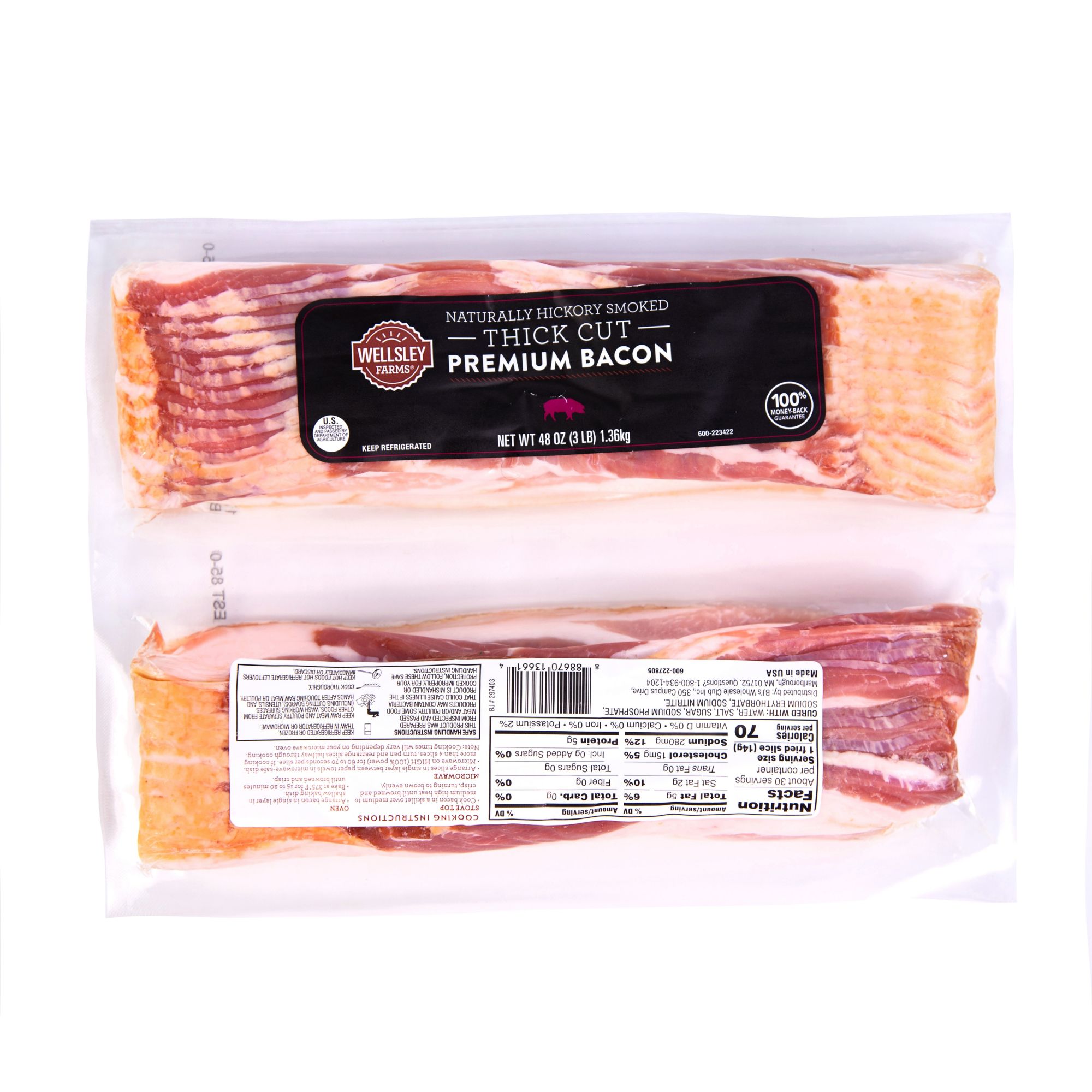 Wellsley Farms Stack Pack Bacon, Naturally Hickory Smoked, Thick Cut Premium Bacon, 2 pk./24 oz.